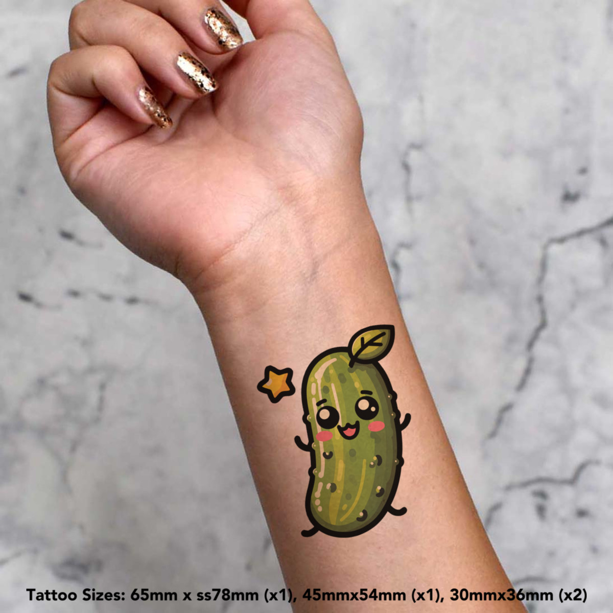 'Cute Kawaii Pickle' Temporary Tattoos - Water Resistant, Skin-Safe, Non-Toxic Transfers (TO048606)