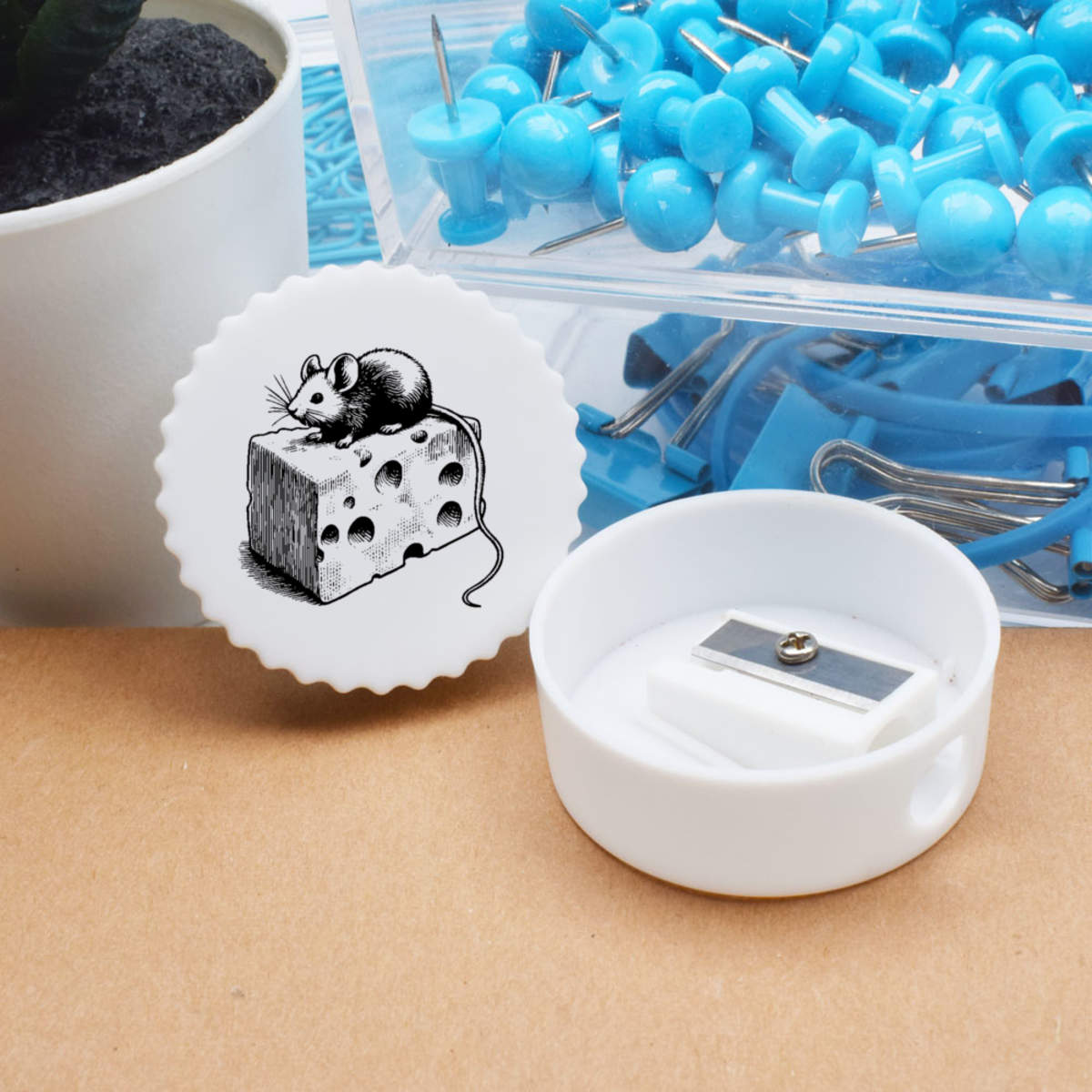 'Cute Mouse On Cheese' Compact Pencil Sharpener (PS00051415)