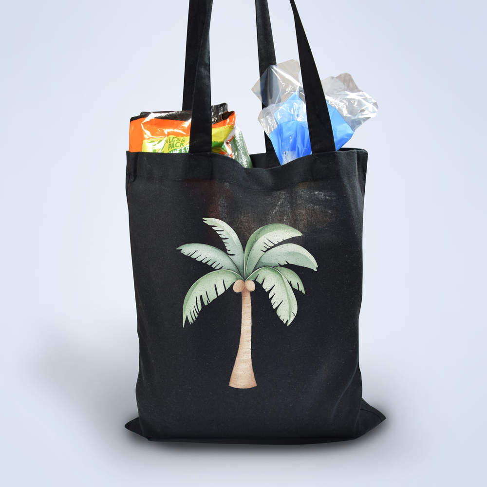 'Cute Palm Tree' Classic Black Tote Shopper Bag (ZB00026644)