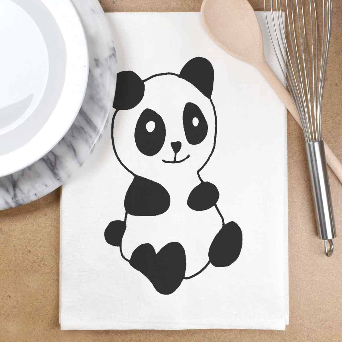 'Cute Panda Bear' White Cotton Tea Towel / Dish Cloth (TW00007260)