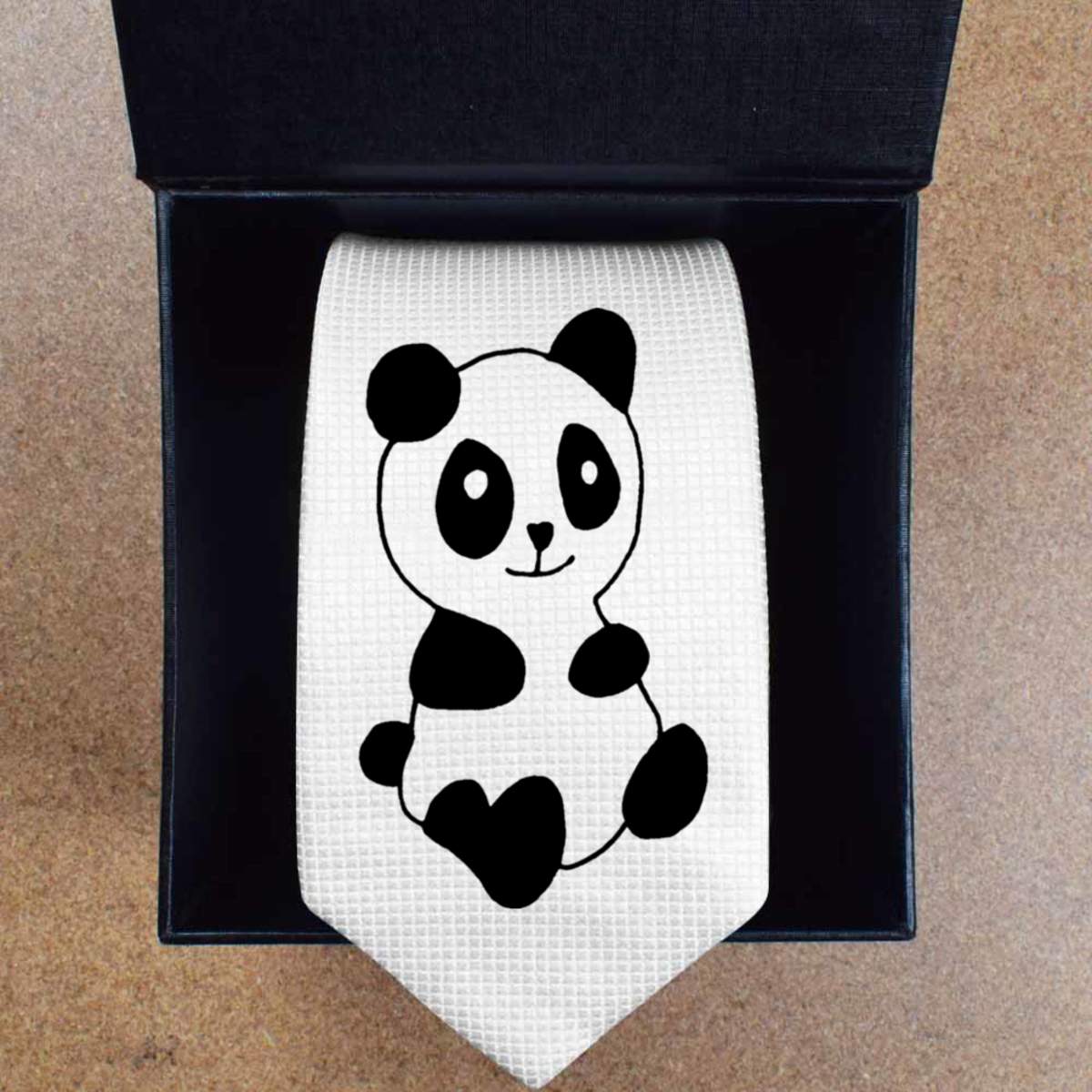 'Cute Panda Bear' White Tie / Necktie with Gift Box (AT00002886)