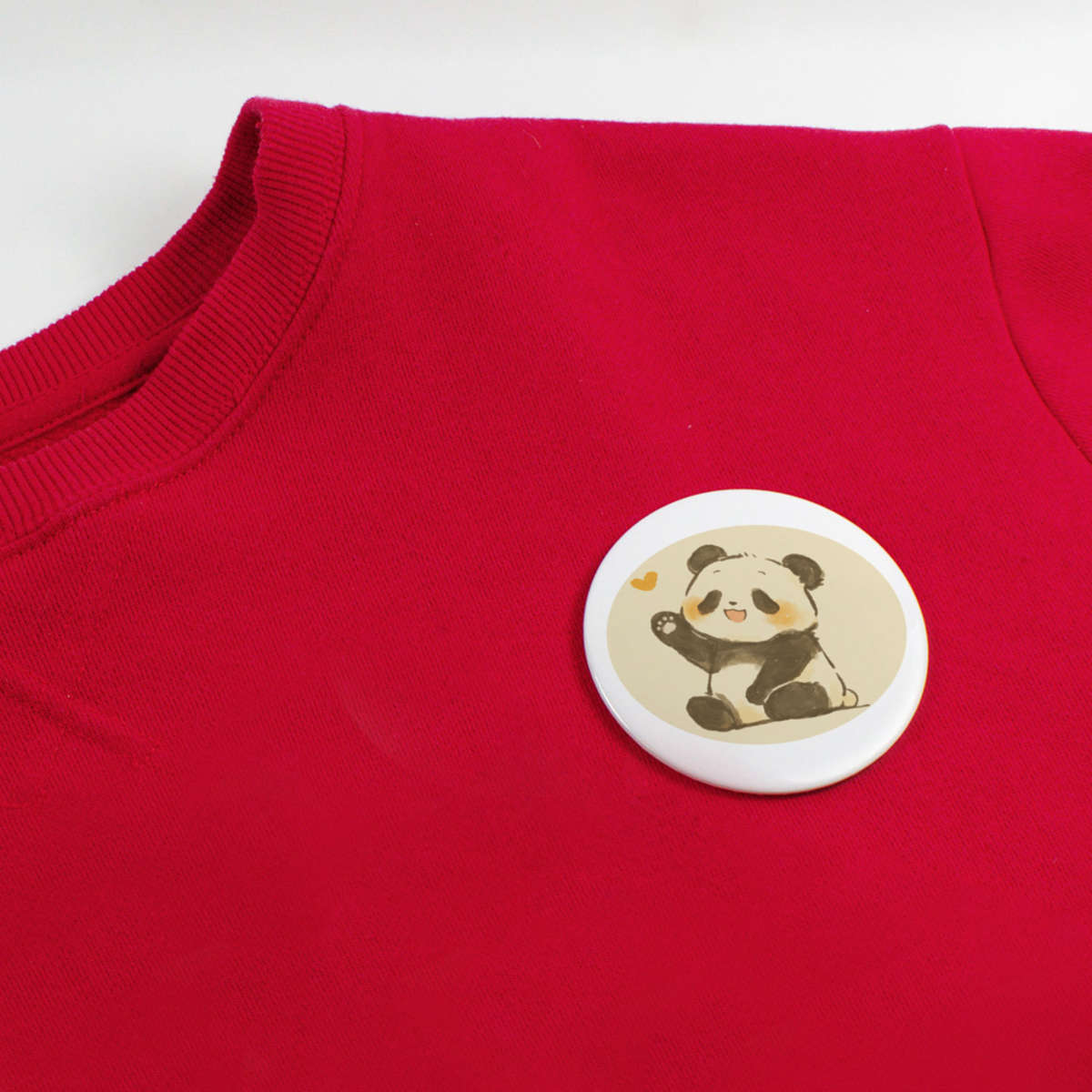 'Cute Panda Waving with Heart ' Button Pin Badges (BB052332)