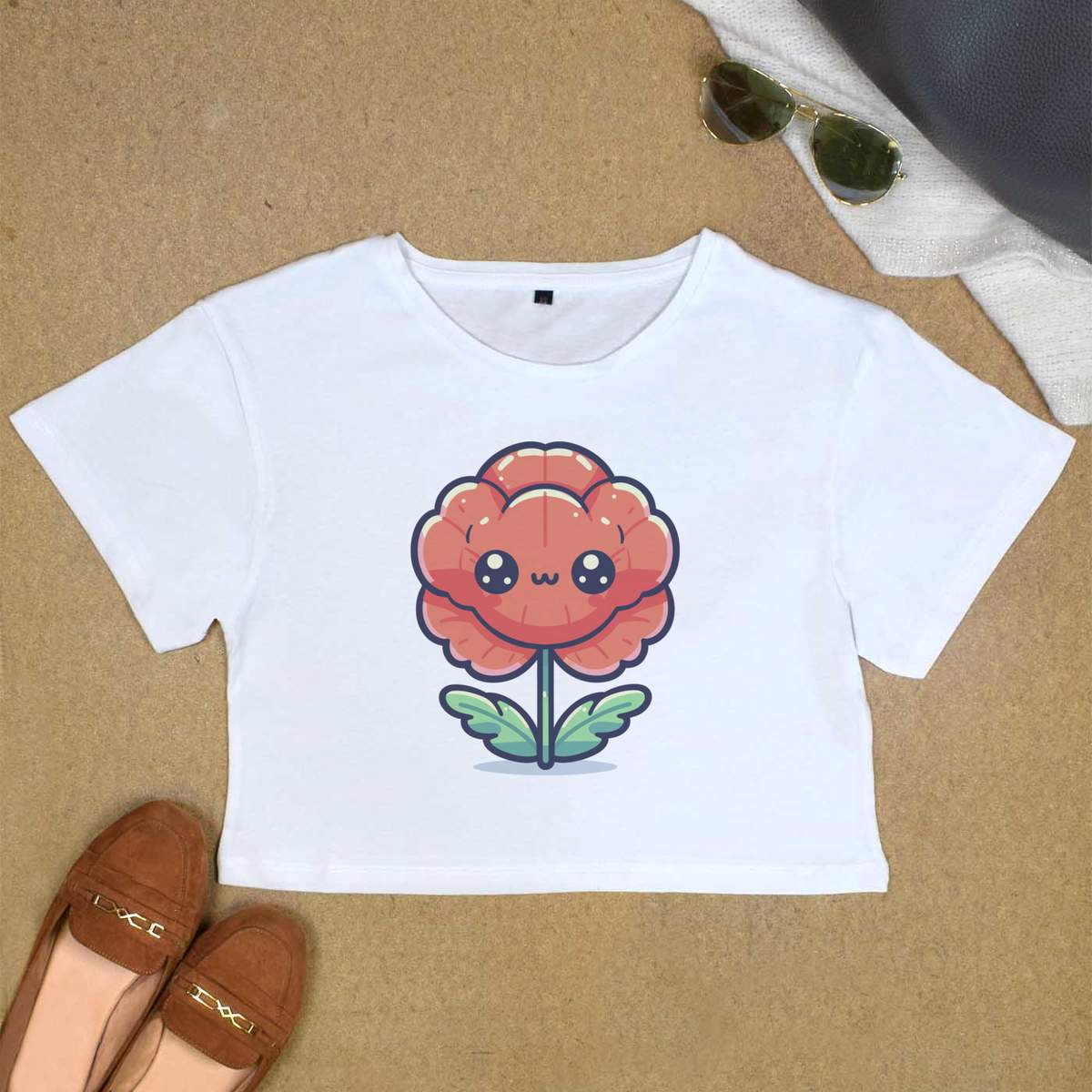 'Women's, Crop Top, White, Crew neck, Cropped'