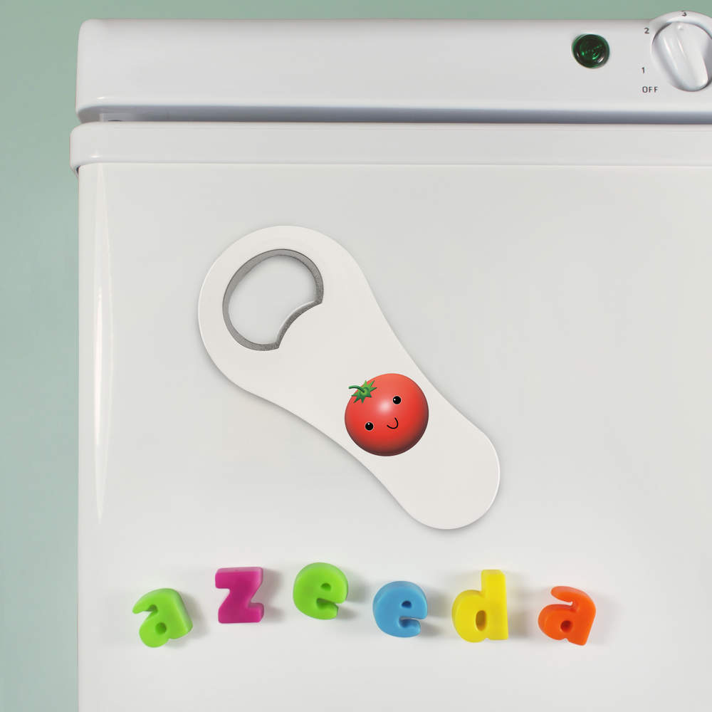 Pop the top where ever you are with this slim, lightweight bottle opener. Made from durable white plastic and printed on one side with a unique design. The back of the bottle opener has a small magnet, making it easy to stick to a fridge full of beer