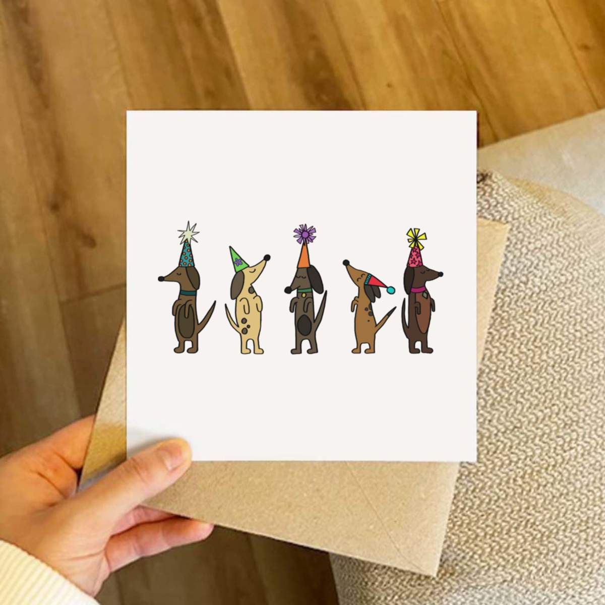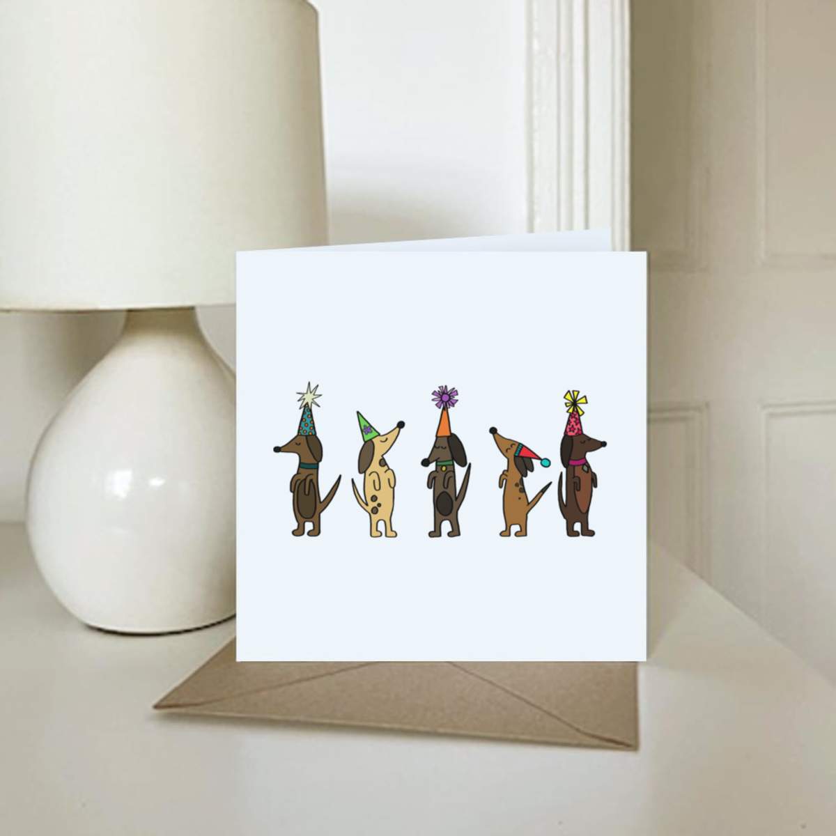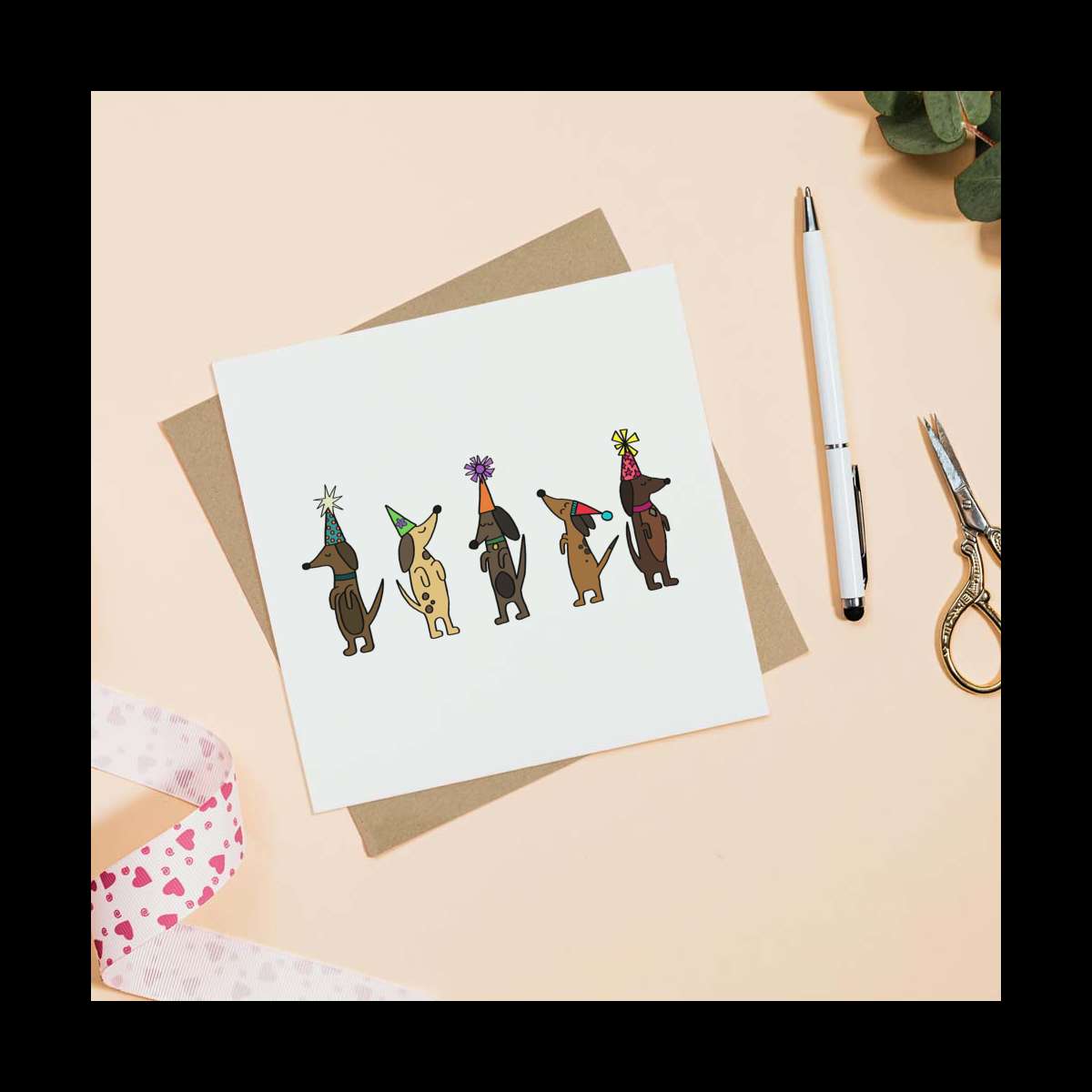 'Party, Birthday, Dachshund, Sausage Dog, Party Hat, Ditsy Dogs, Natalie Taylor, dachshund designs, '