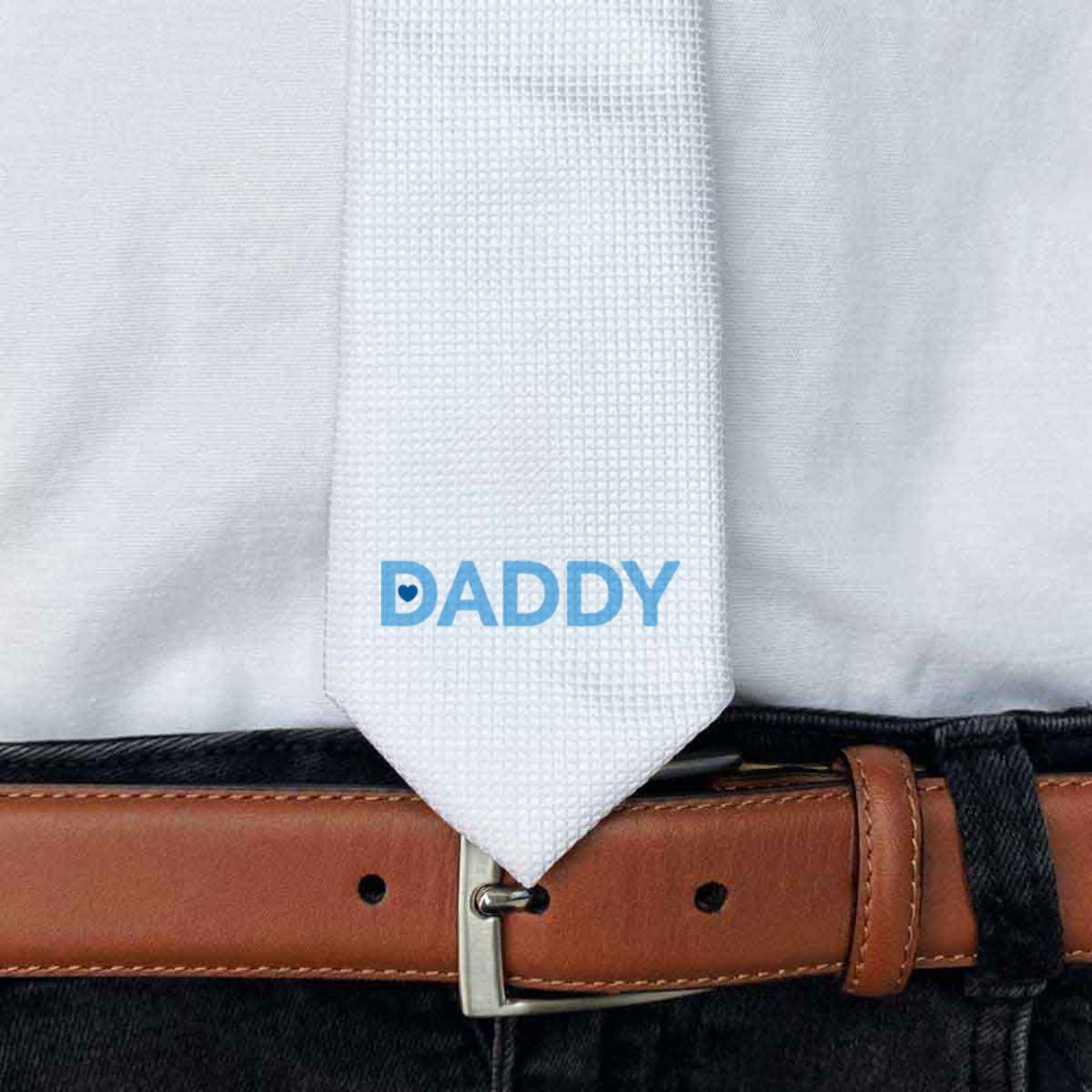 This stylish slim white tie is guaranteed to add class to any outfit. Printed on the front with a design from one of our talented designers, these ties are perfect for formal events, special occasions or making a statement at the office.