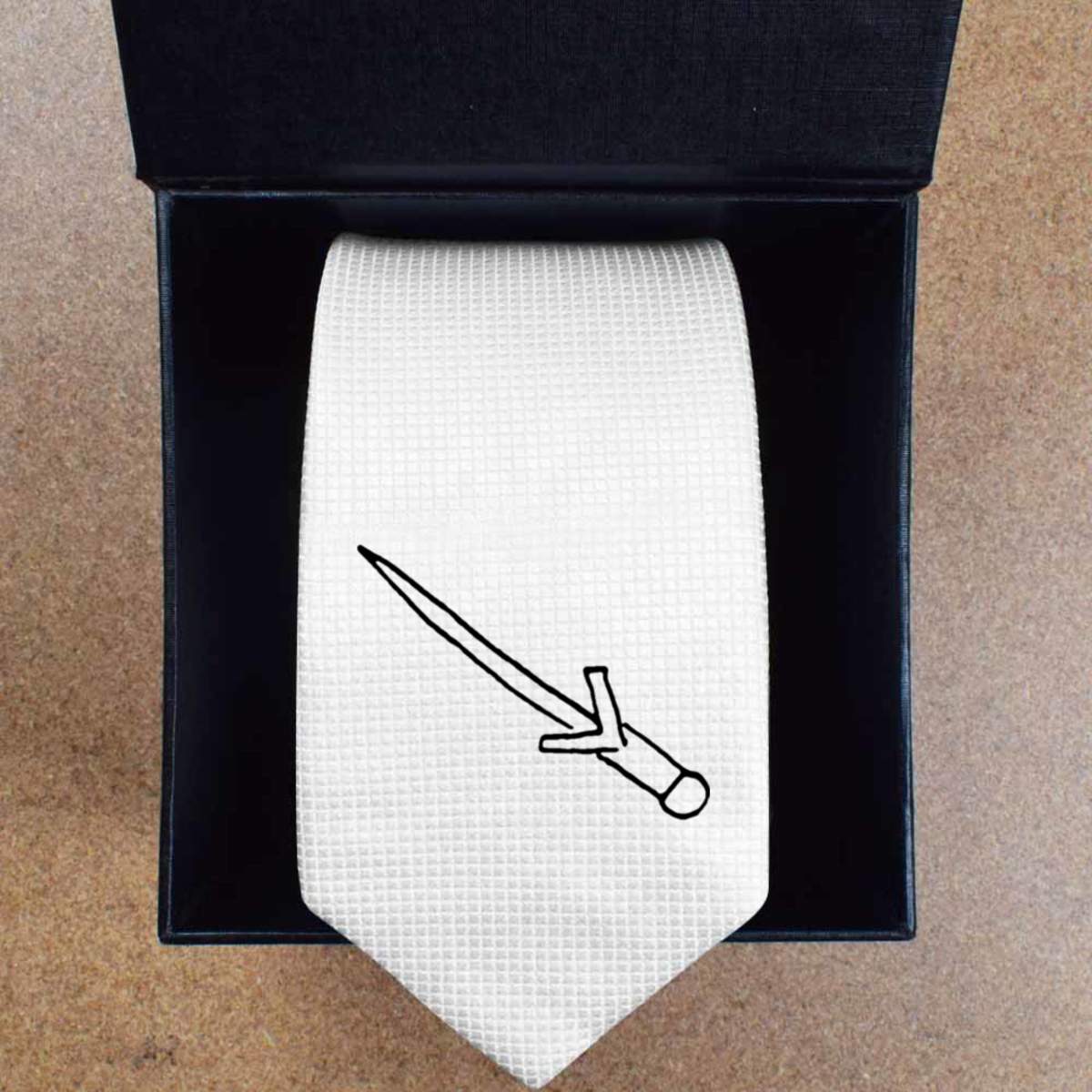 'Dagger' White Tie / Necktie with Gift Box (AT00002684)
