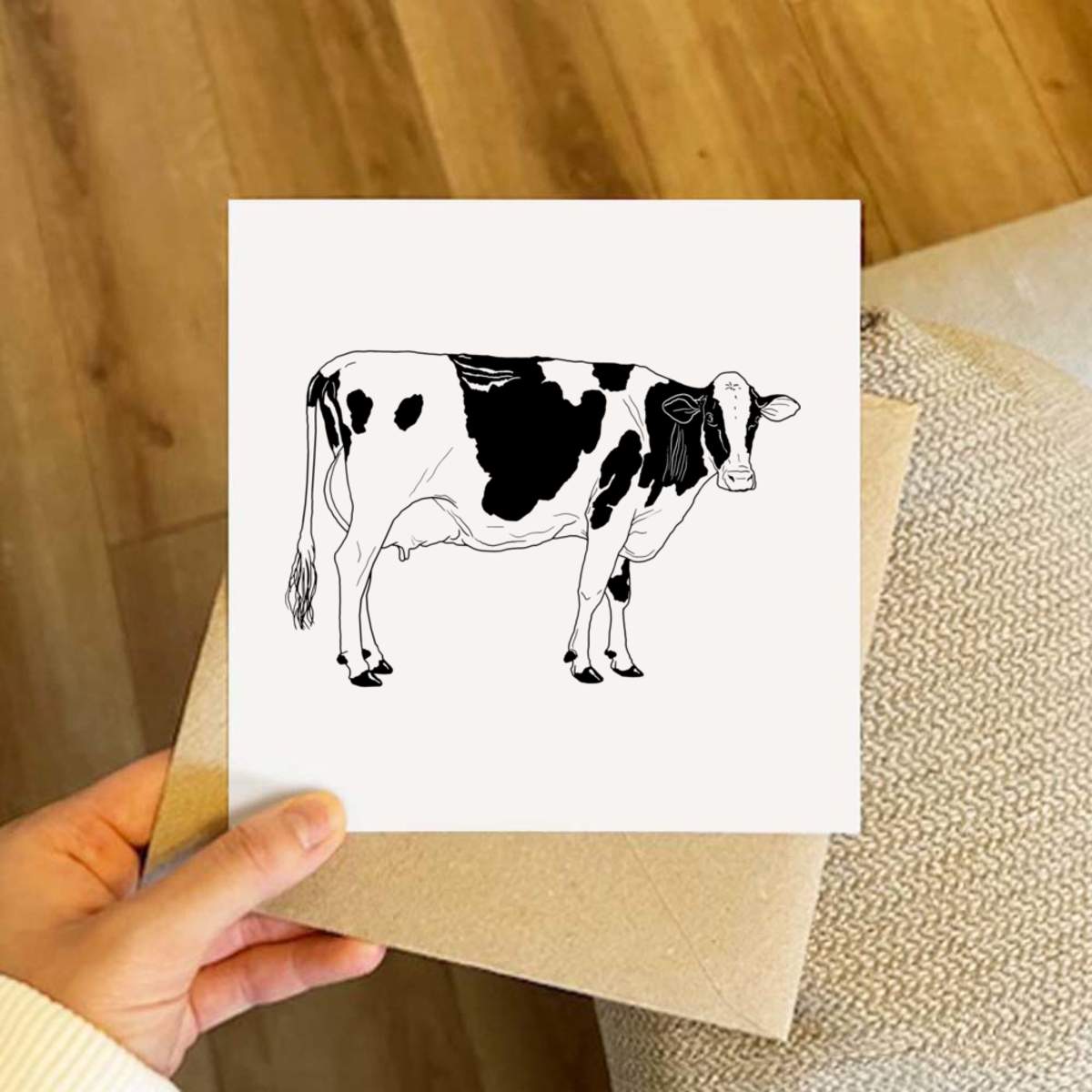 - Square greeting card supplied with a recycled brown envelope