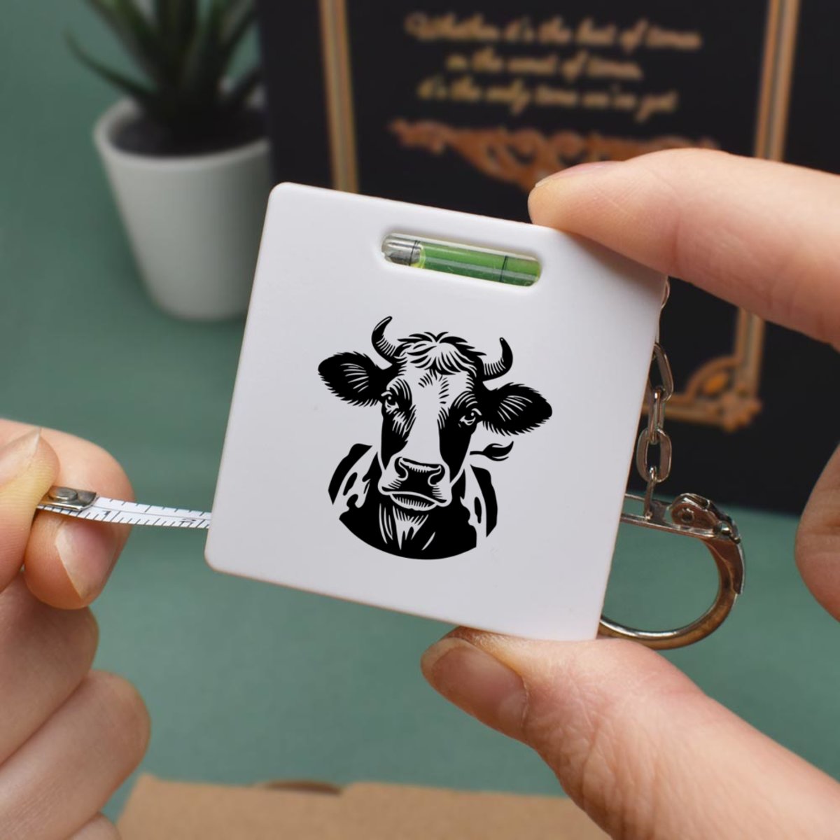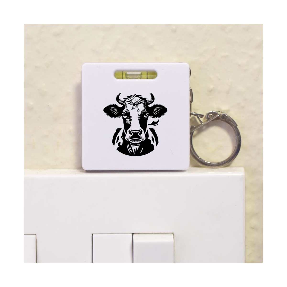 This multifunctional tool offers both a tape measure and spirit level in one handy little accessory. The retractable, 1 metre tape measure has both imperial and metric units, while the flat edges around its plastic casing provide the ability to check both vertical and horizontal surfaces with a mini spirit level. The compact and lightweight design makes it easy to carry around; simply attach with the keychain provided and whip it out when needed. Each keyring tape measure tool is printed on one side with a unique design.