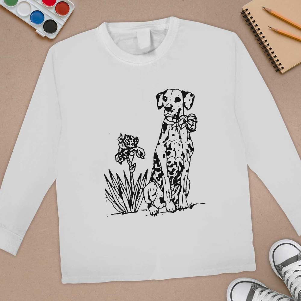 'dalmation, dog, flower, tulip, iris, plant, flower, nature, pet, cute, cat, ribbon, love, scenery'