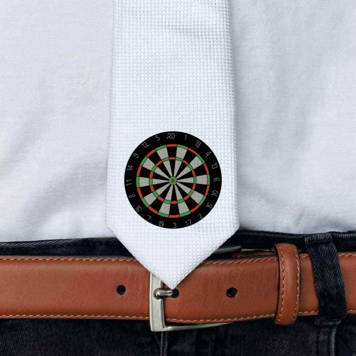 This stylish slim white tie is guaranteed to add class to any outfit. Printed on the front with a design from one of our talented designers, these ties are perfect for formal events, special occasions or making a statement at the office.