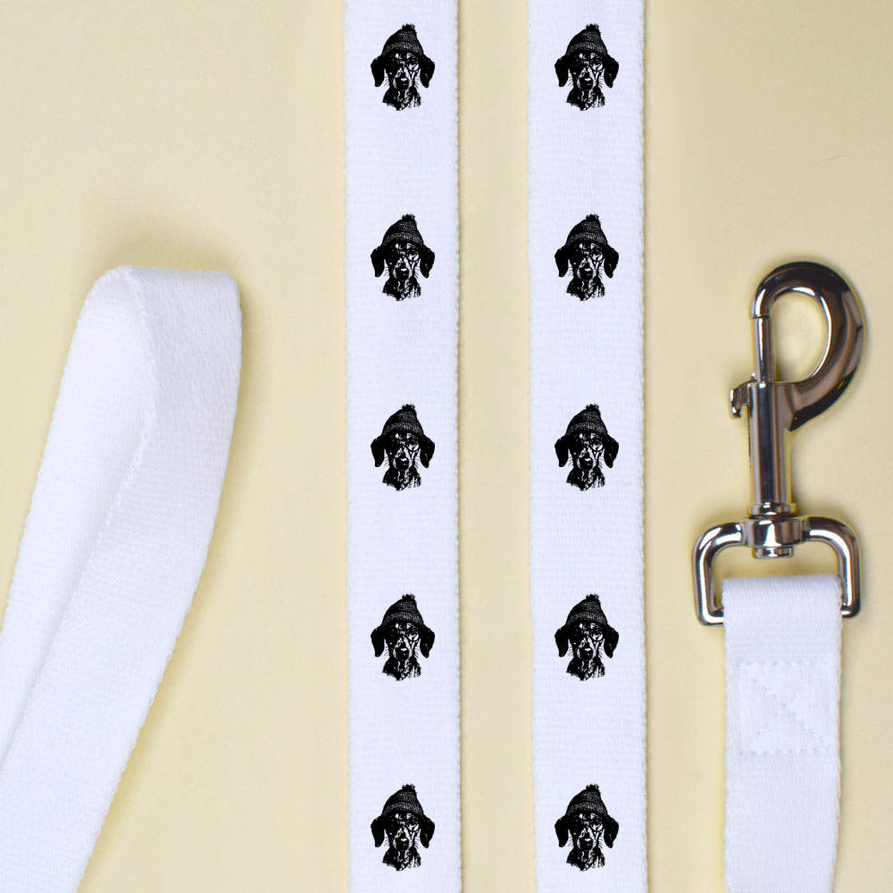Keep your furry friend safe and stylish with our premium dog lead, designed for durability, comfort, and control. This smooth-finish lead is perfect for daily walks, training sessions, and outdoor adventures. The strong polyester webbing ensures long-lasting use, while the sturdy metal clasp securely attaches to your dog's collar or harness. Printed with this unique design along the lead on one side, your pet will stand out on every walk.