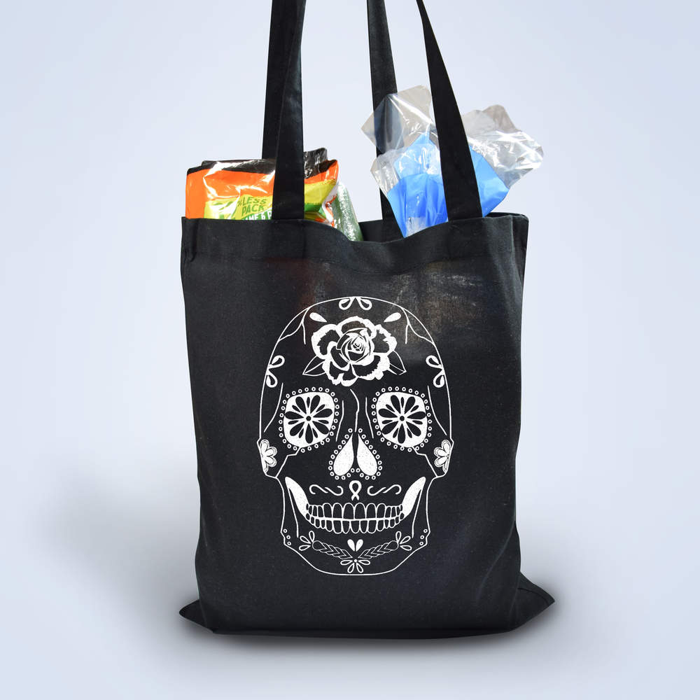 'Day Of The Dead Skull' Classic Black Tote Shopper Bag (ZB00019472)