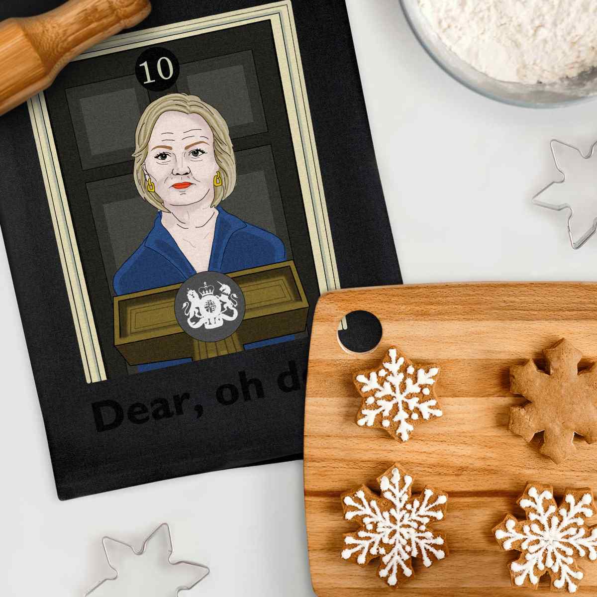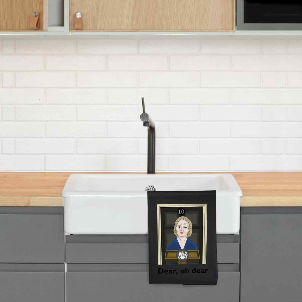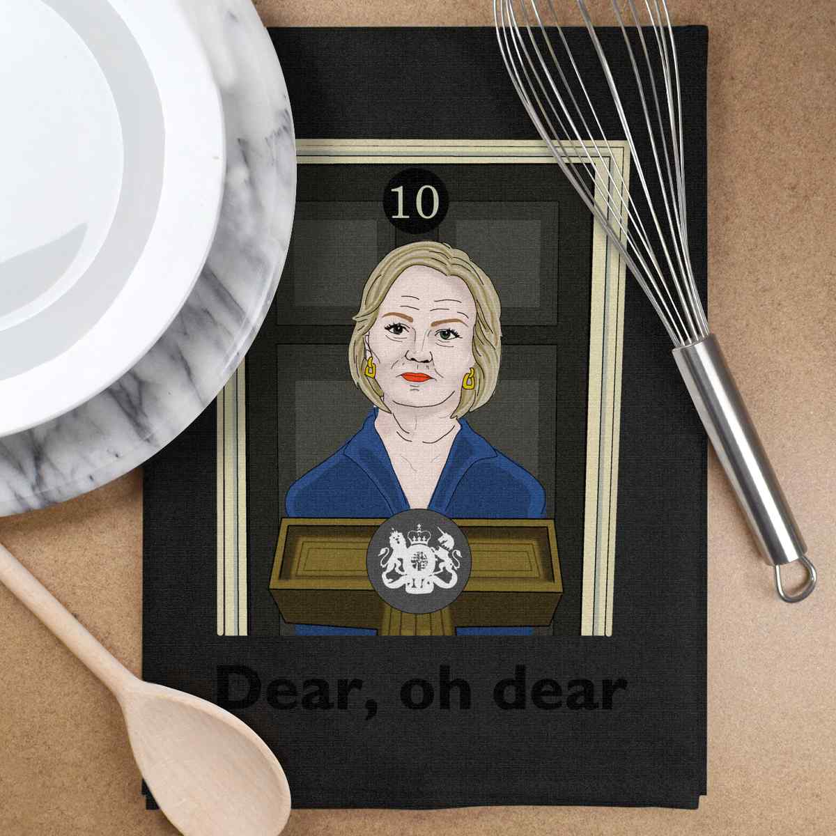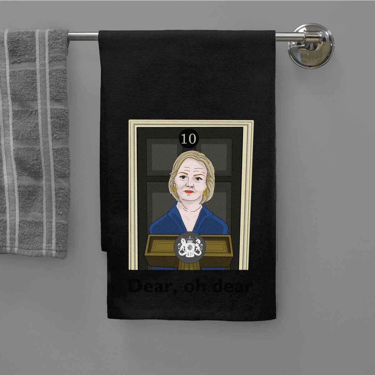 'Dear, Oh Dear Liz Truss No.10' Black Cotton Tea Towel / Dish Cloth (TW00050656)
