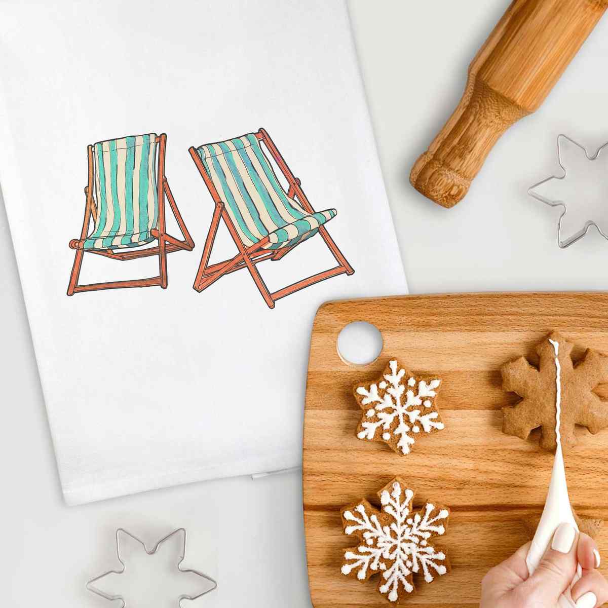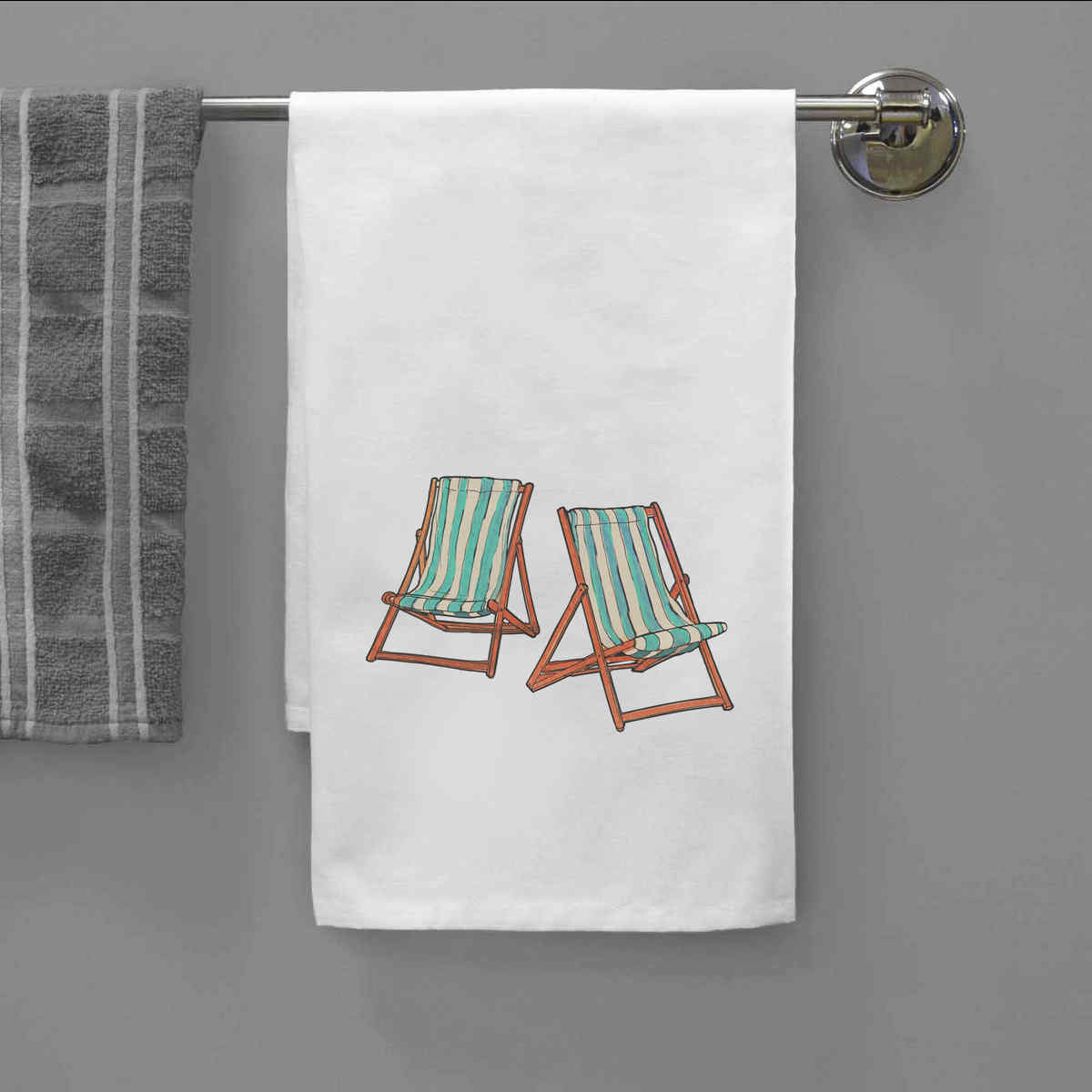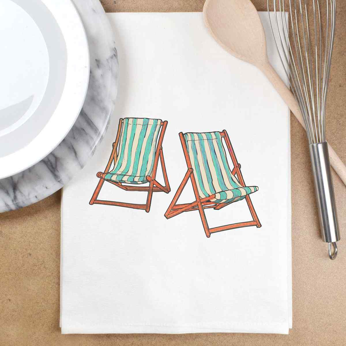 'Deck Chairs' White Cotton Tea Towel / Dish Cloth (TW00010975)