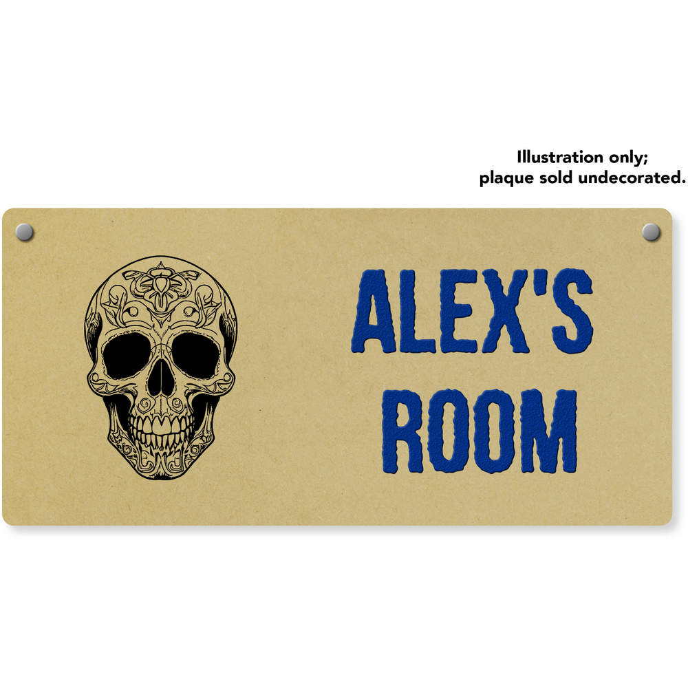 'Decorated Skull' Large Wooden Wall Plaque / Door Sign (DP00060323)