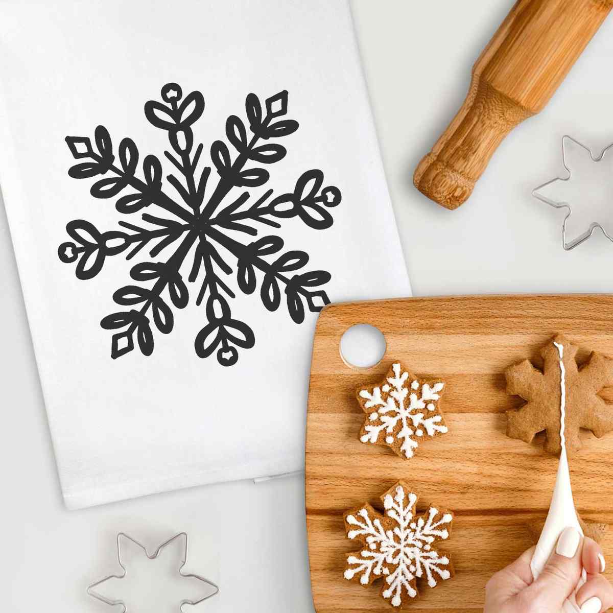 'Decorative Snowflake' Cotton Tea Towel / Dish Cloth (TW022881)