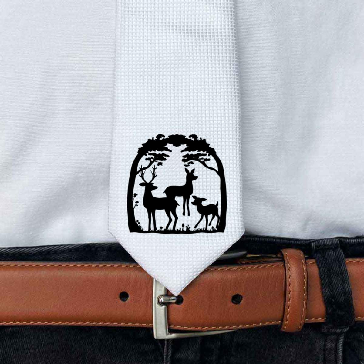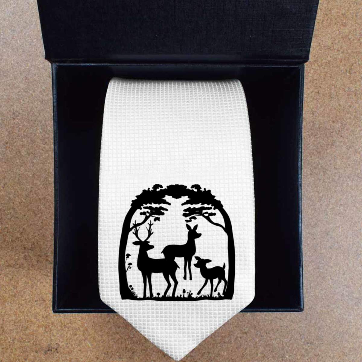 This stylish slim white tie is guaranteed to add class to any outfit. Printed on the front with a design from one of our talented designers, these ties are perfect for formal events, special occasions or making a statement at the office.
