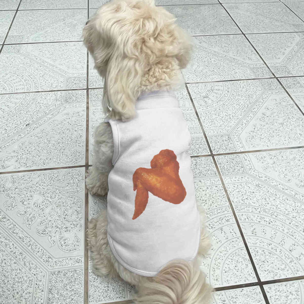 Give your furry friend a fresh new look with this adorable white dog T-shirt, designed to turn heads with its unique print on the back! Made from 100% polyester, it offers a comfortable yet firm stretch, perfect for both playtime adventures and cozy cuddles. Whether your dog loves to play outdoors or cuddle indoors, this T-shirt provides all-day comfort and style.