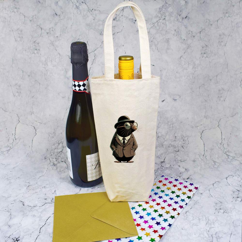 Give a gift in style with this wonderful wine bottle bag. Printed one side with a unique design, this bag oozes with class. Each one is made from thick natural canvas and its high quality finish means it can be used again and again; perfect for picnics and adventures where a bottle of the finest wine is required. This bottle bag can comfortably carry a single standard wine or champagne bottle, up to 1.5 litres, but please check the bag dimensions are suitable before purchasing.