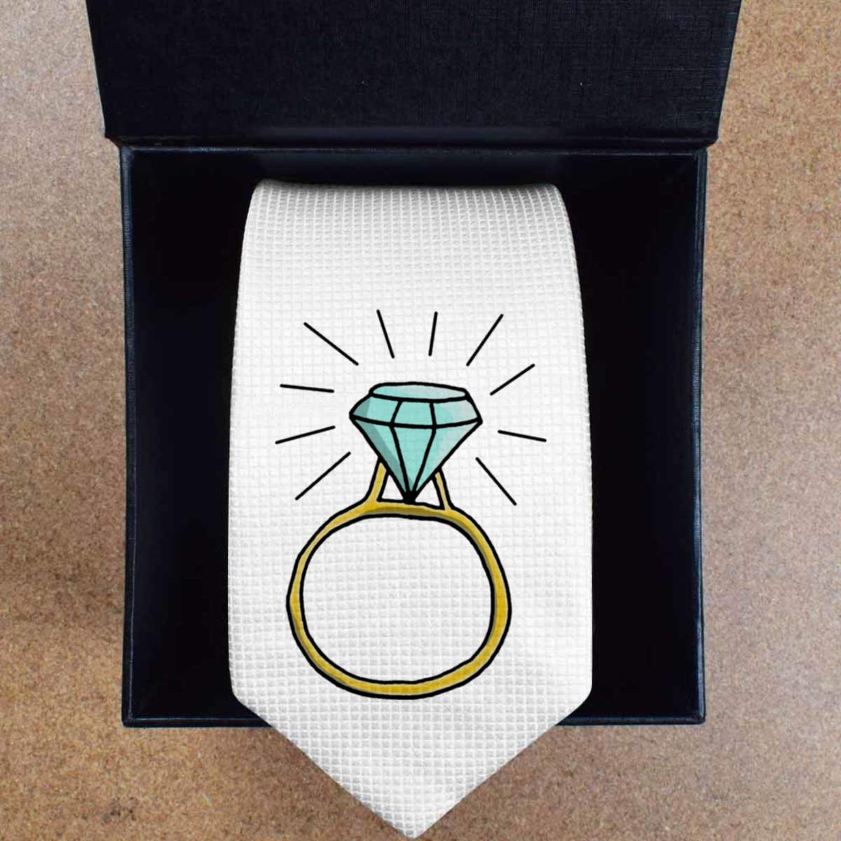 'Diamond Wedding Ring' White Tie / Necktie with Gift Box (AT00006265)