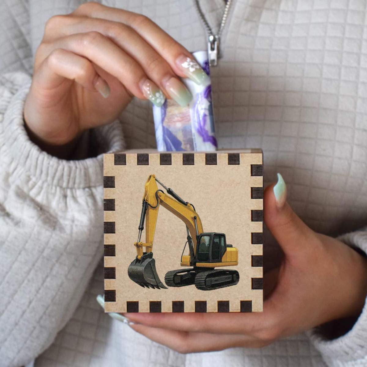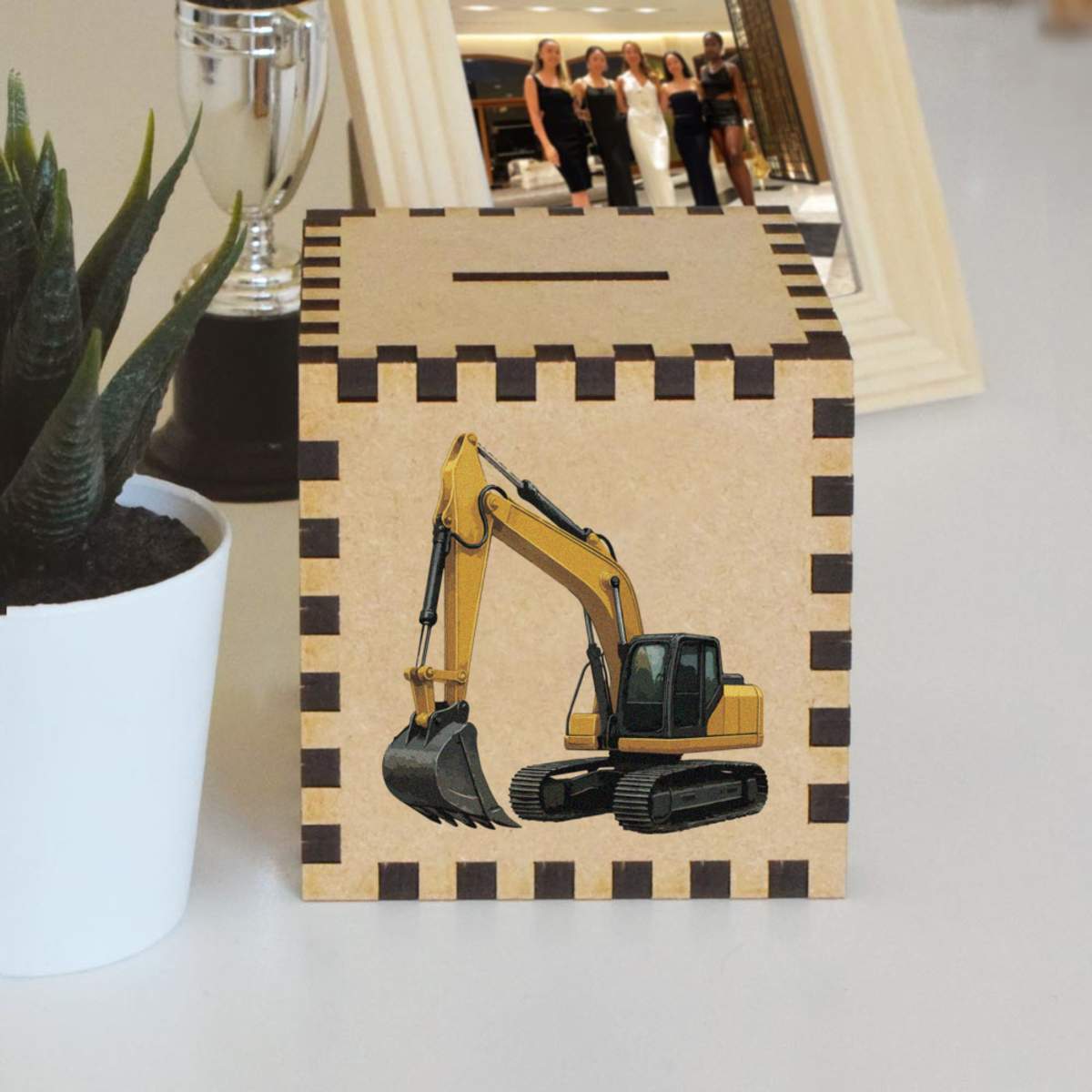 'A bold design of a powerful digger, perfect for fans of construction vehicles, engineering, and heavy machinery.'
