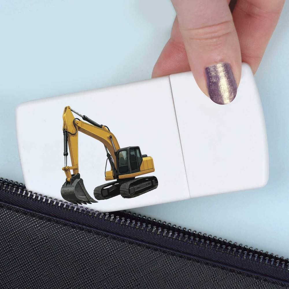 'A bold design of a powerful digger, perfect for fans of construction vehicles, engineering, and heavy machinery.'