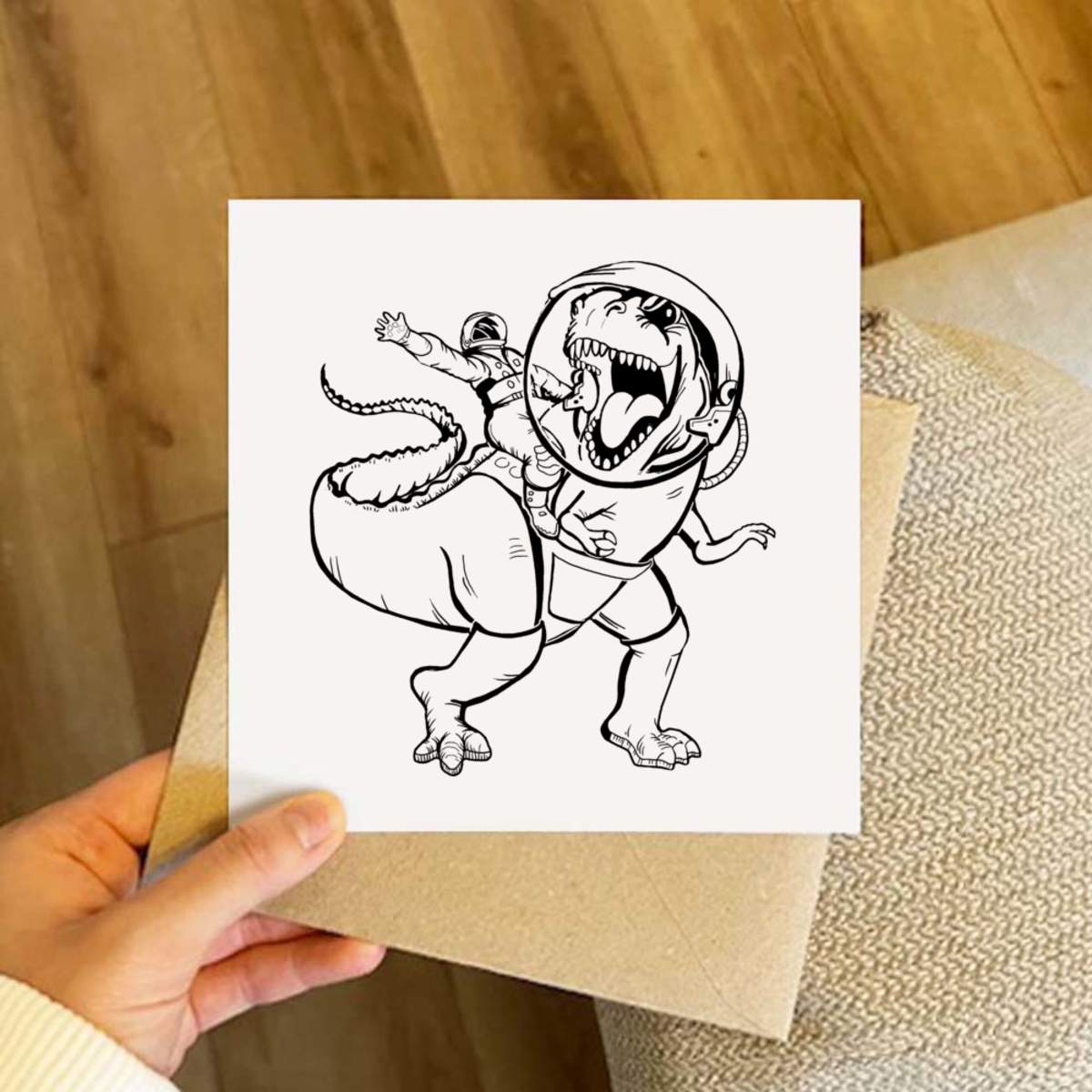 - Square greeting card supplied with a recycled brown envelope