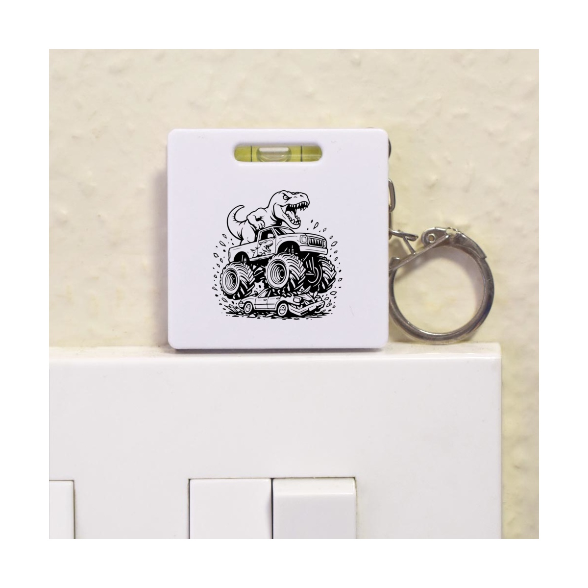 This multifunctional tool offers both a tape measure and spirit level in one handy little accessory. The retractable, 1 metre tape measure has both imperial and metric units, while the flat edges around its plastic casing provide the ability to check both vertical and horizontal surfaces with a mini spirit level. The compact and lightweight design makes it easy to carry around; simply attach with the keychain provided and whip it out when needed. Each keyring tape measure tool is printed on one side with a unique design.