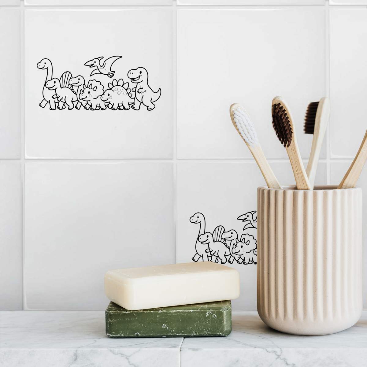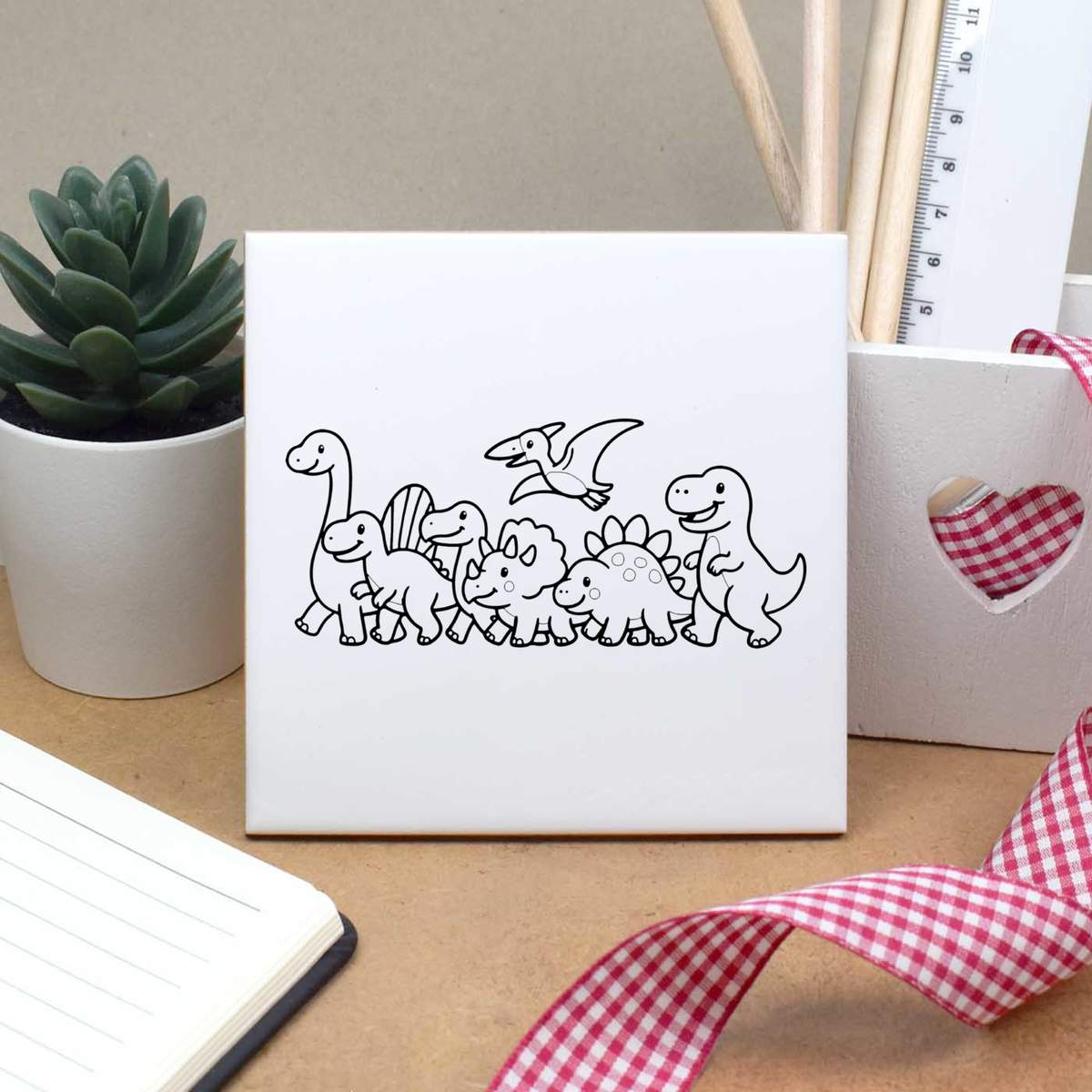 'Dinosaur Parade' 108mm Square Ceramic Tile (TD00034870)