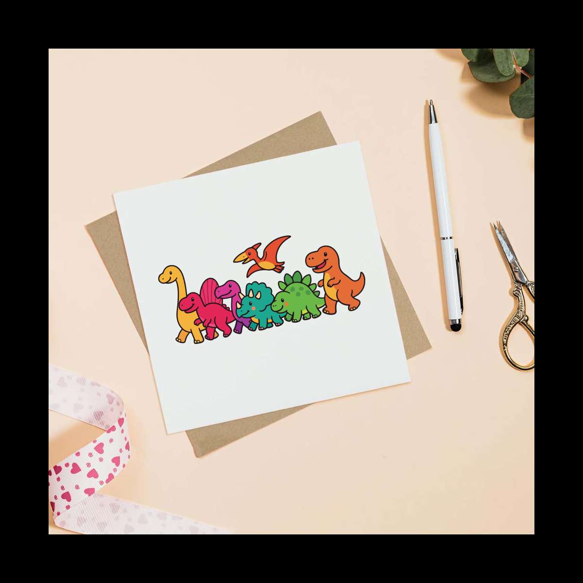 - Square greeting card supplied with a recycled brown envelope