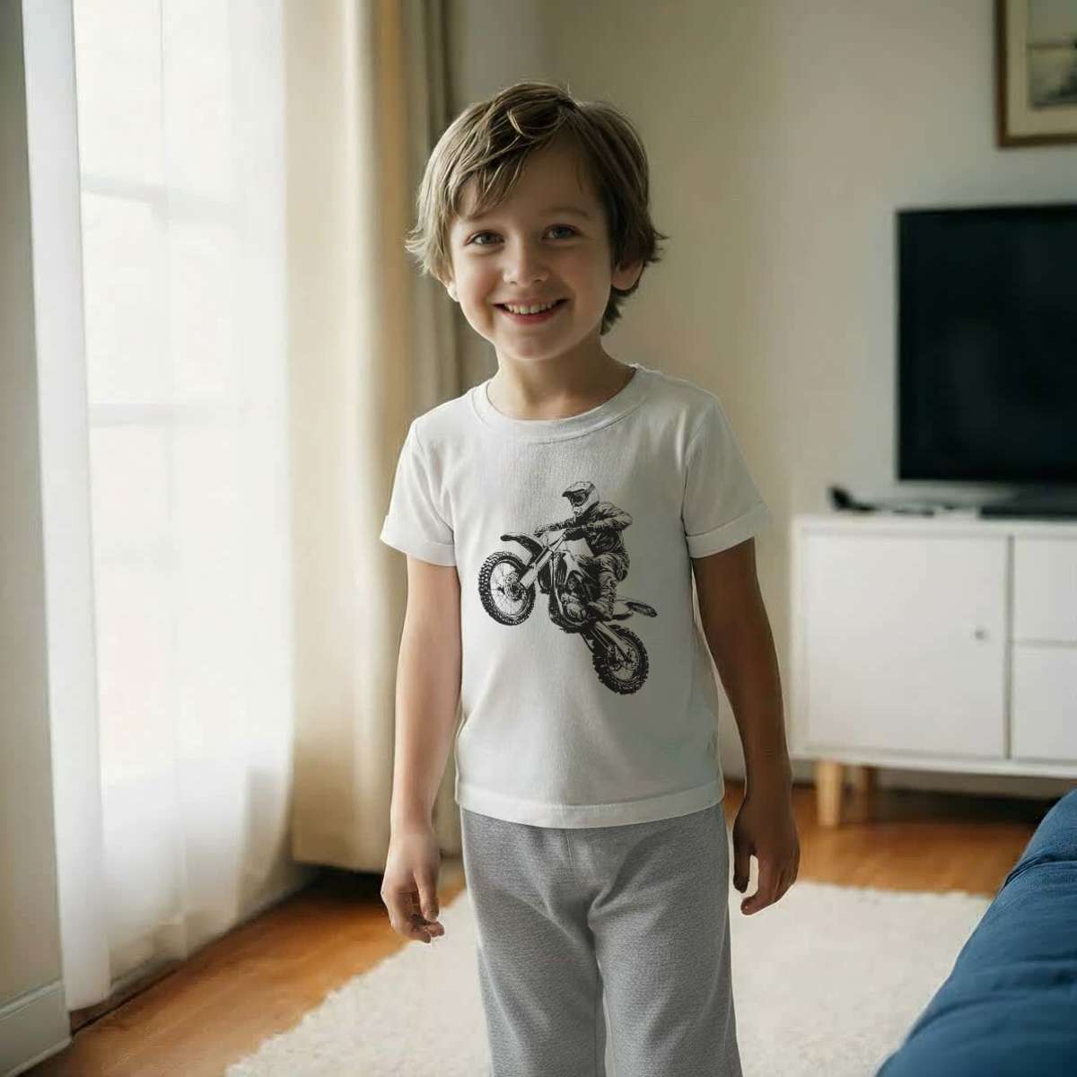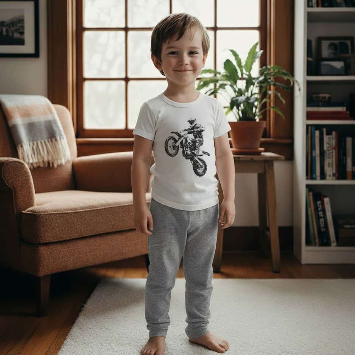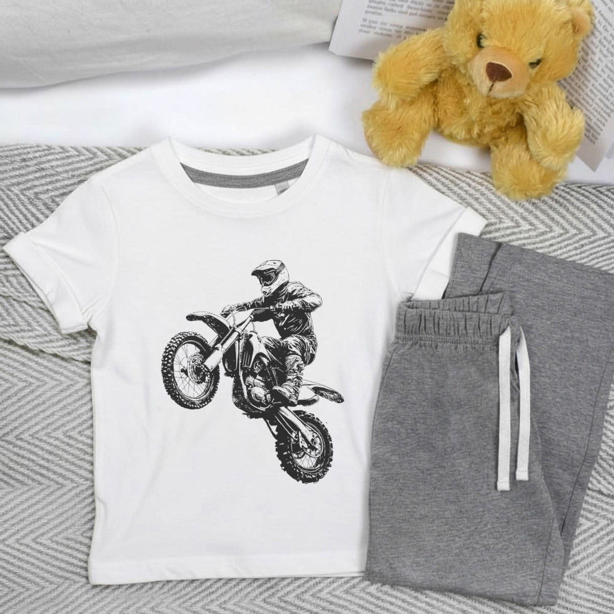 'Dirt Bike Jump' Kids Cotton Pyjama Set – Comfortable Children's Nightwear, Sleepwear and Loungewear - Unisex for Boys and Girls – Grey (KP049223)