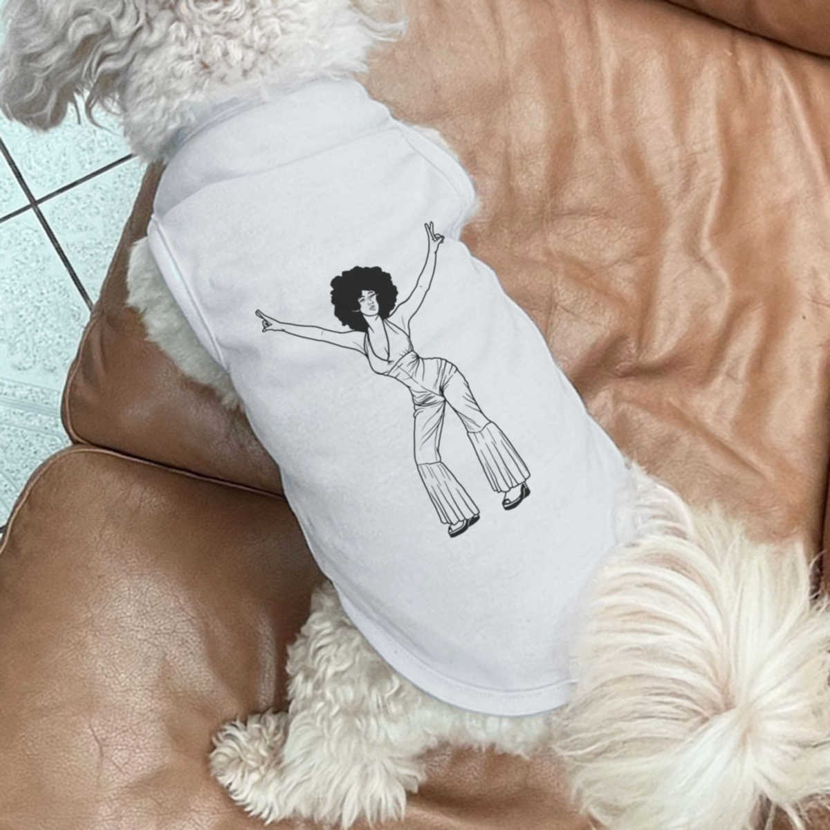 Give your furry friend a fresh new look with this adorable white dog T-shirt, designed to turn heads with its unique print on the back! Made from 100% polyester, it offers a comfortable yet firm stretch, perfect for both playtime adventures and cozy cuddles. Whether your dog loves to play outdoors or cuddle indoors, this T-shirt provides all-day comfort and style.