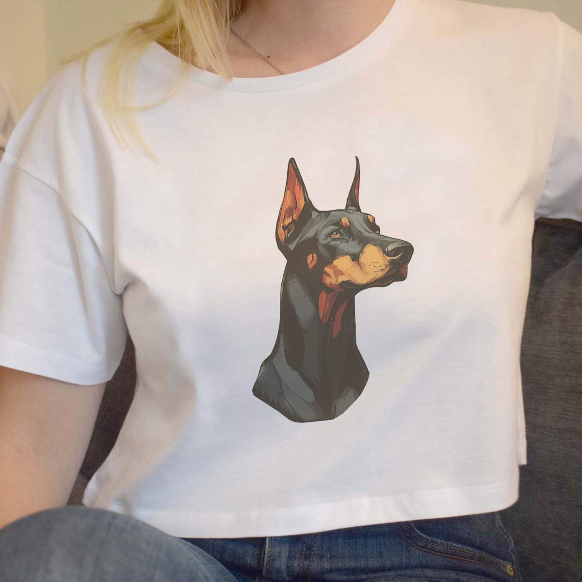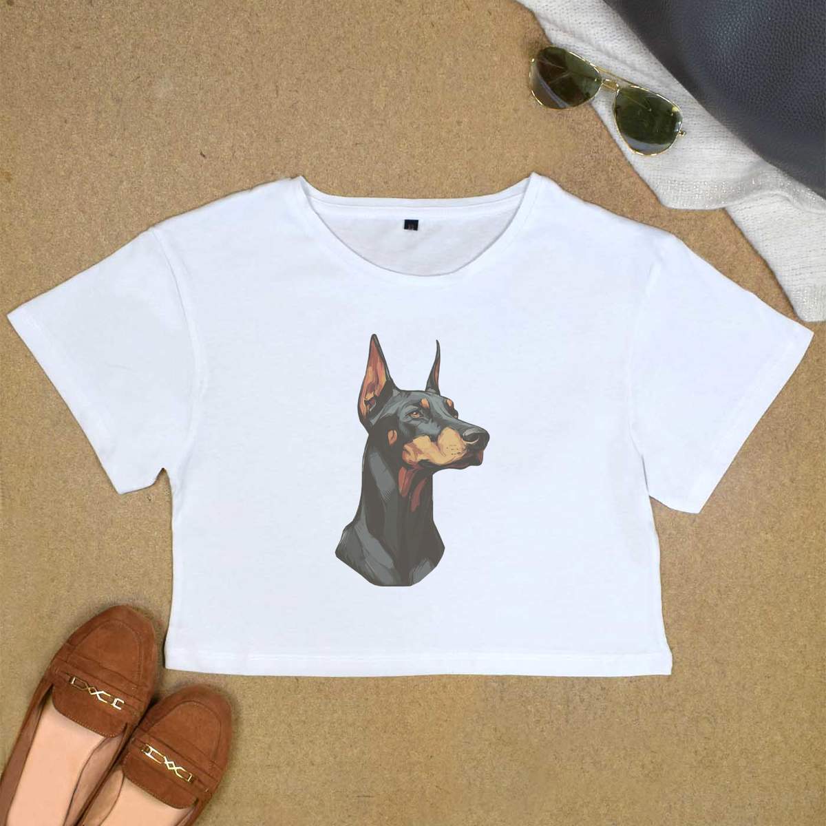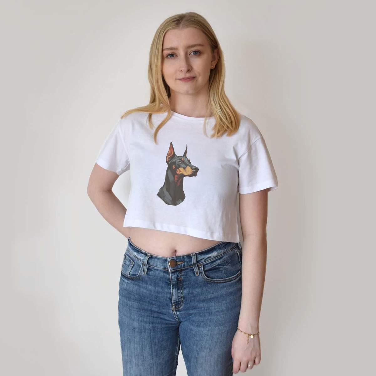 'Women's, Crop Top, White, Crew neck, Cropped'