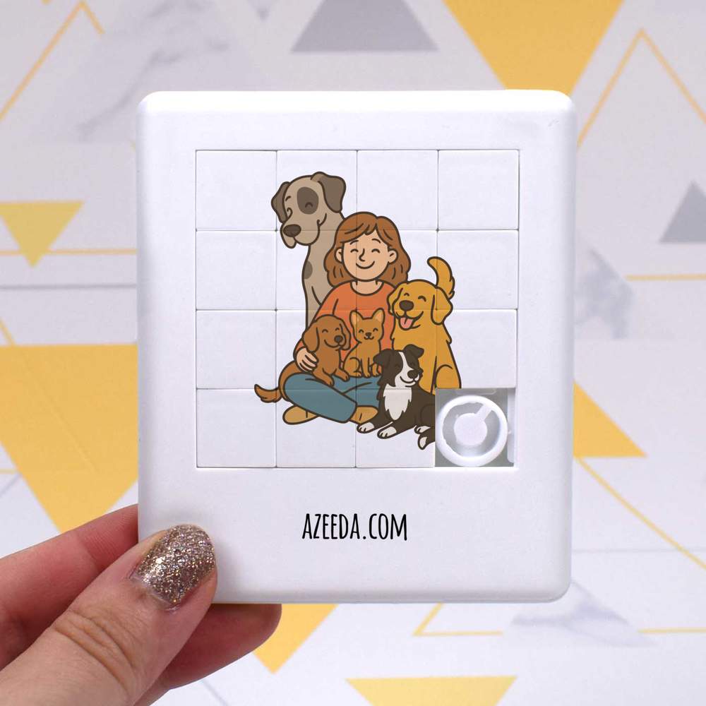 - Pocket sized puzzle with sliding square pieces