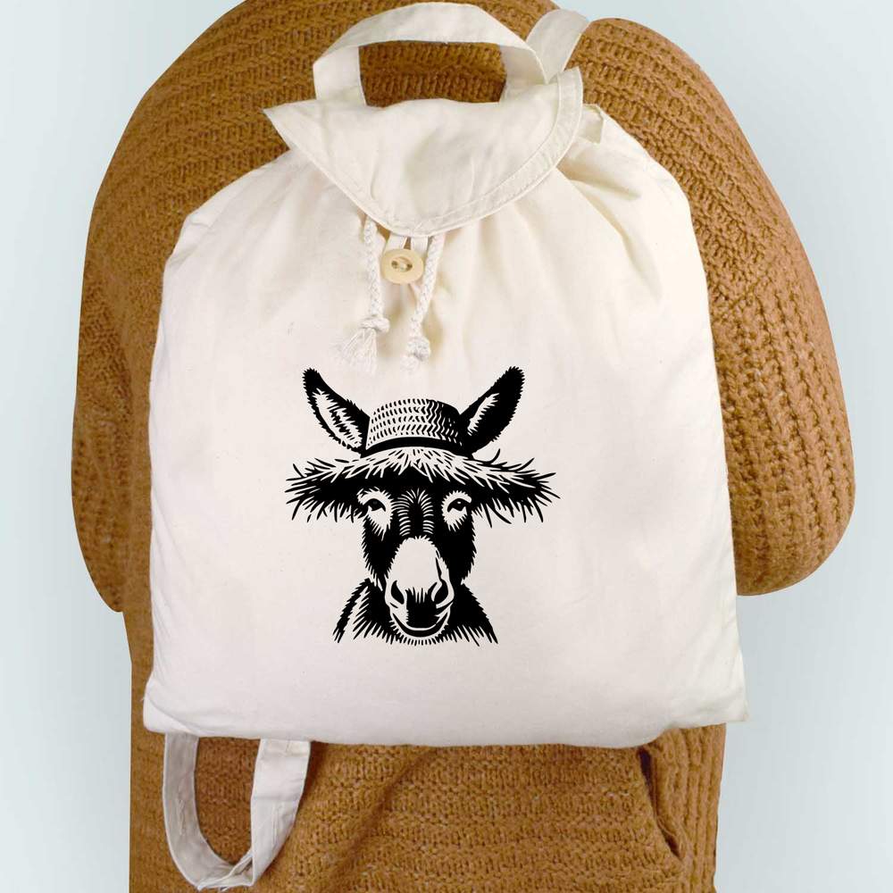'Donkey Wearing A Straw Hat' Canvas Rucksack / Backpack (RK00038111)