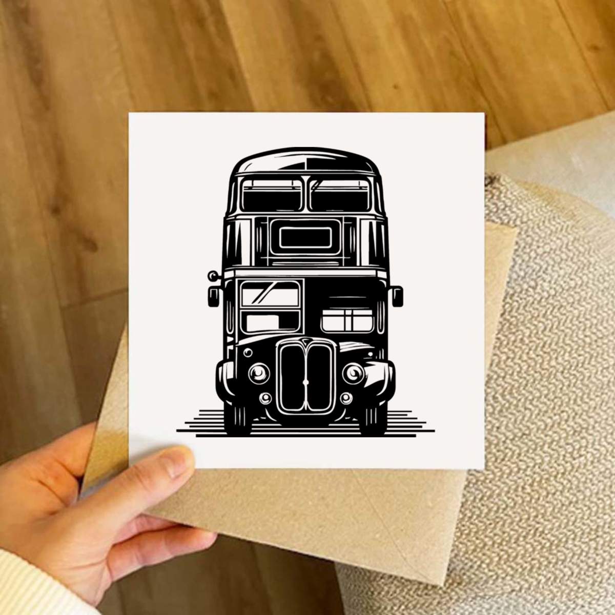 - Square greeting card supplied with a recycled brown envelope