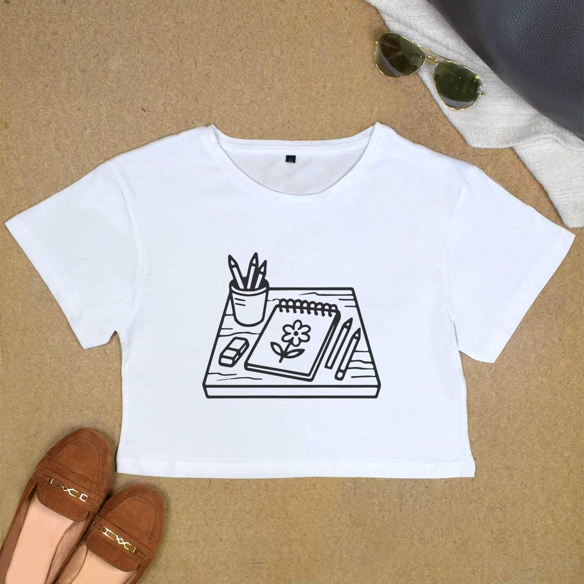 'Women's, Crop Top, White, Crew neck, Cropped'