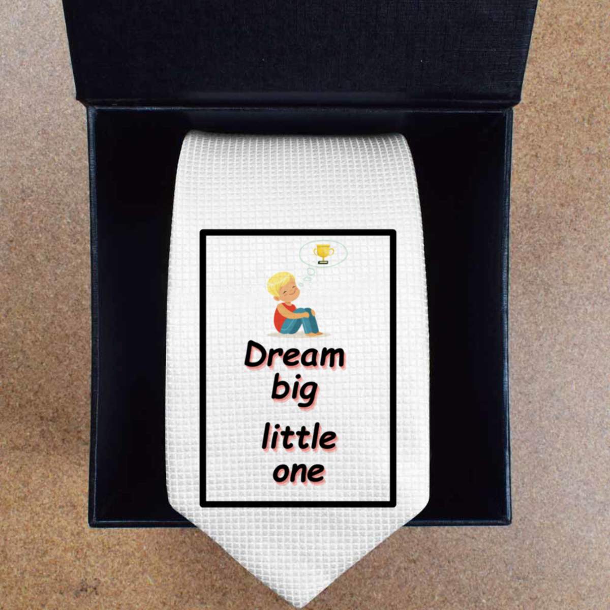 This stylish slim white tie is guaranteed to add class to any outfit. Printed on the front with a design from one of our talented designers, these ties are perfect for formal events, special occasions or making a statement at the office.