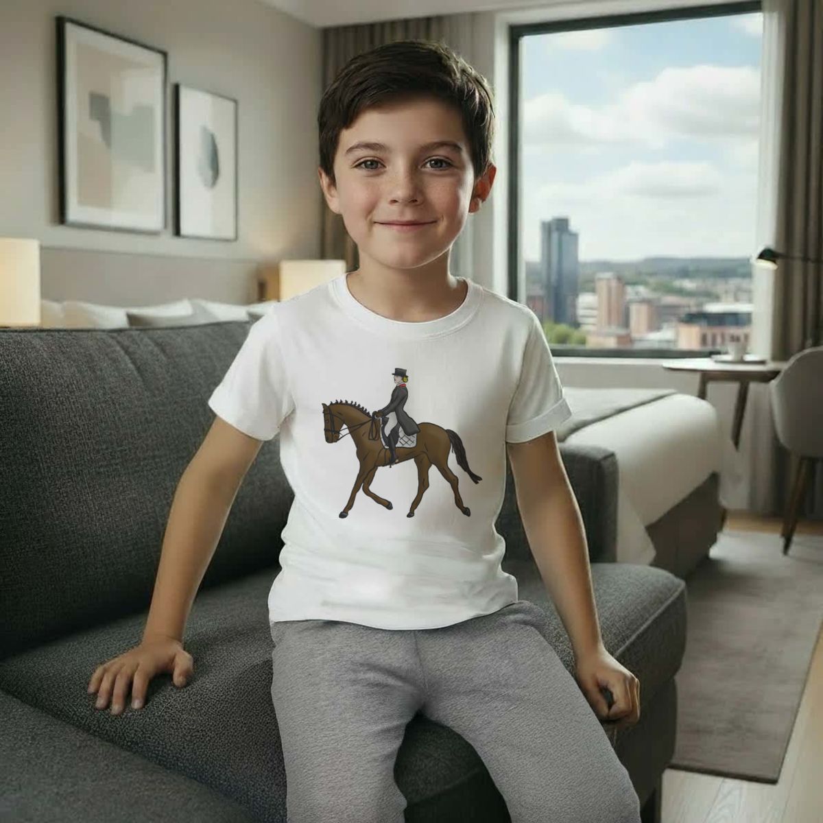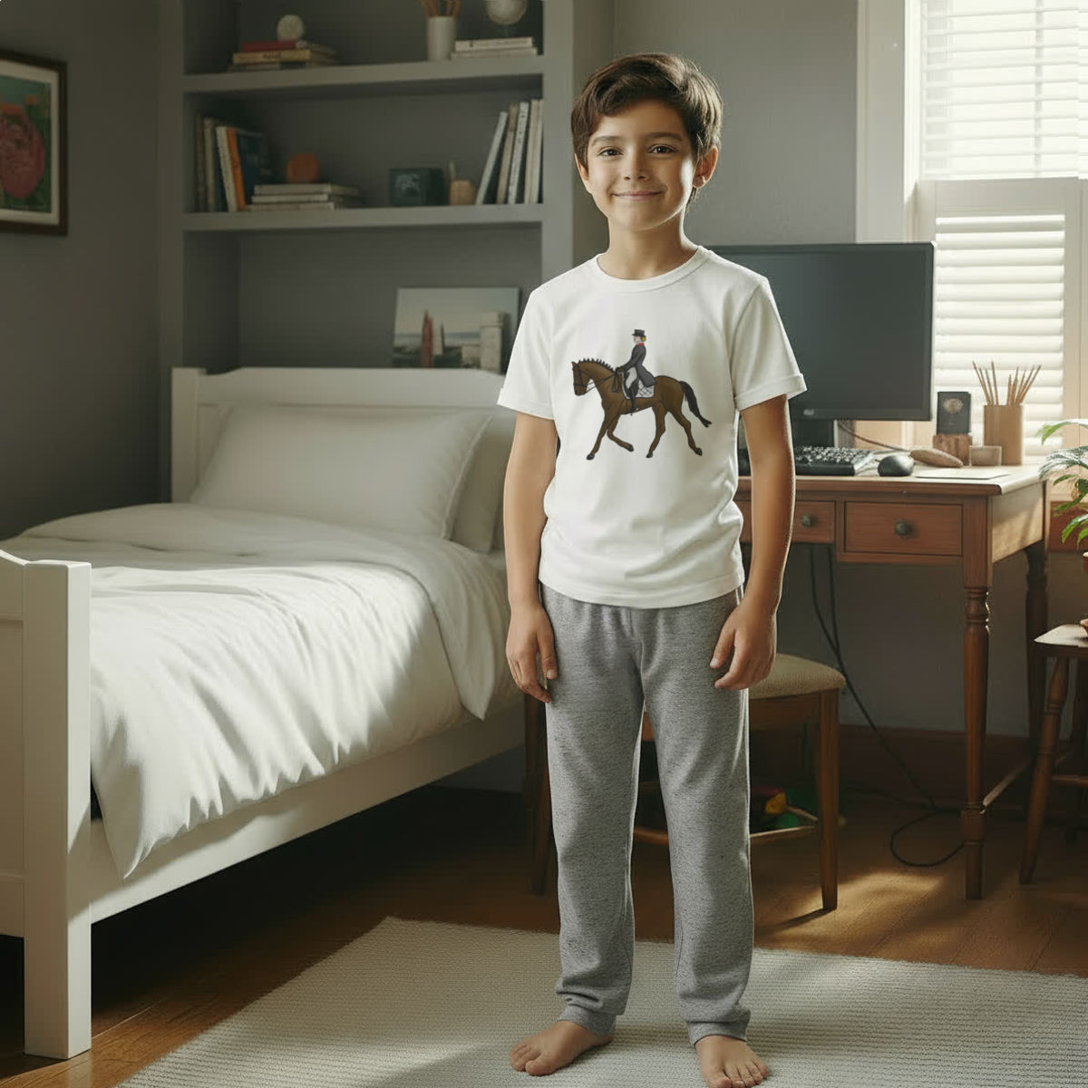'Dressage Horse & Rider' Kids Cotton Pyjama Set – Comfortable Children's Nightwear, Sleepwear and Loungewear - Unisex for Boys and Girls - Grey, 9-10 Years (KP00063188)