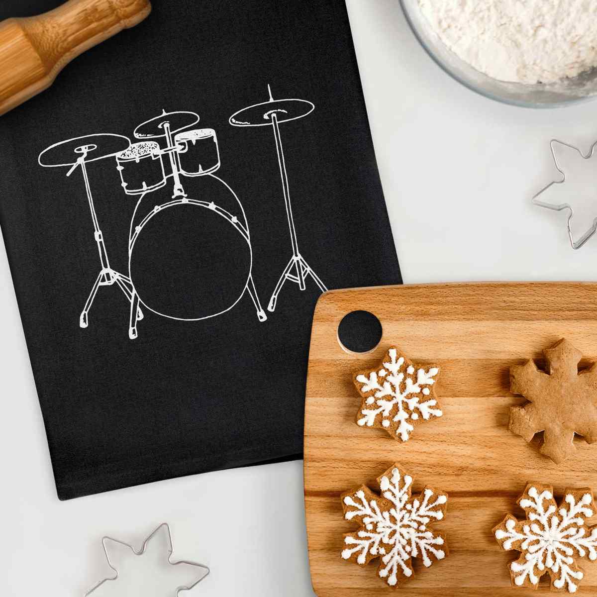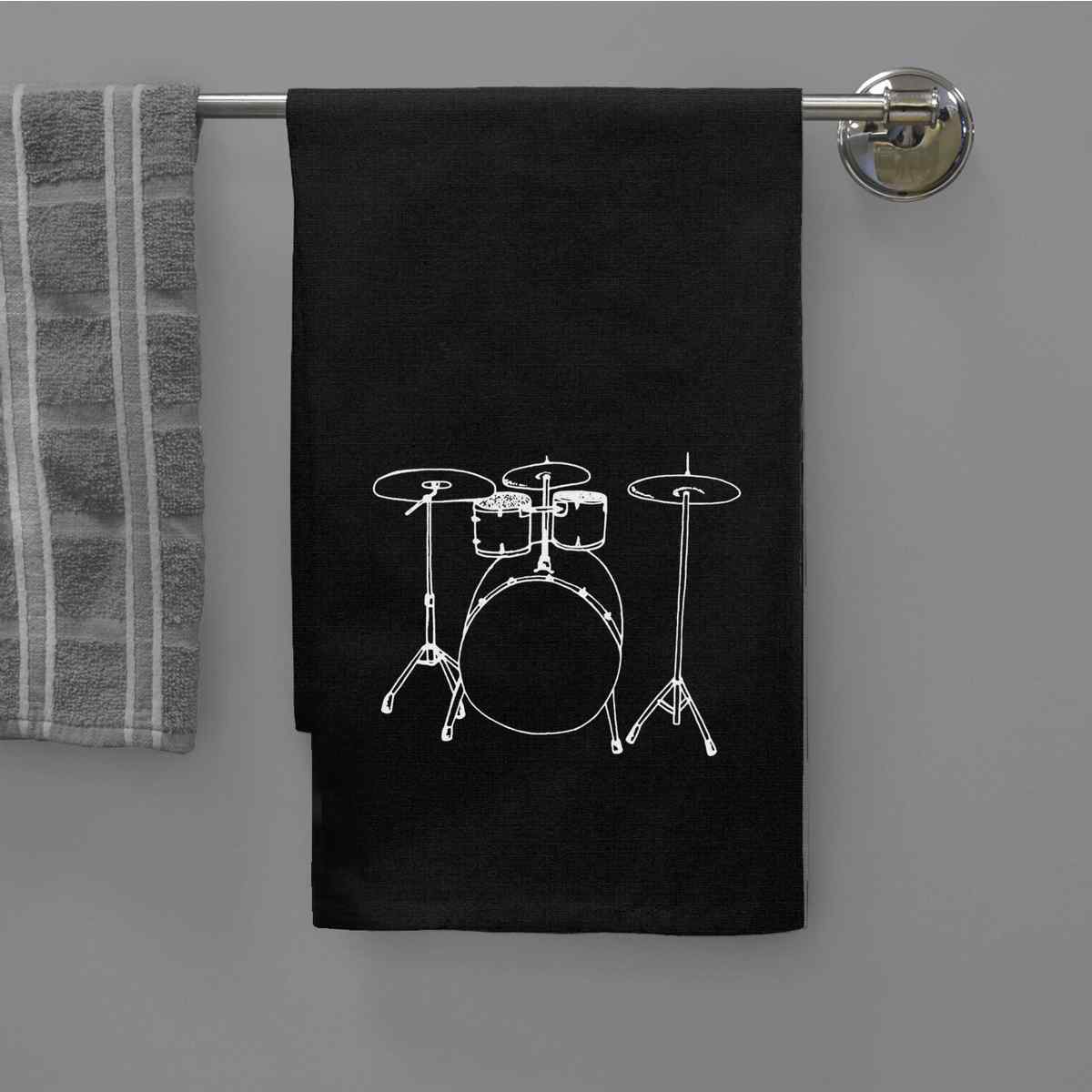 'Drum Set' Black Cotton Tea Towel / Dish Cloth (TW00041770)