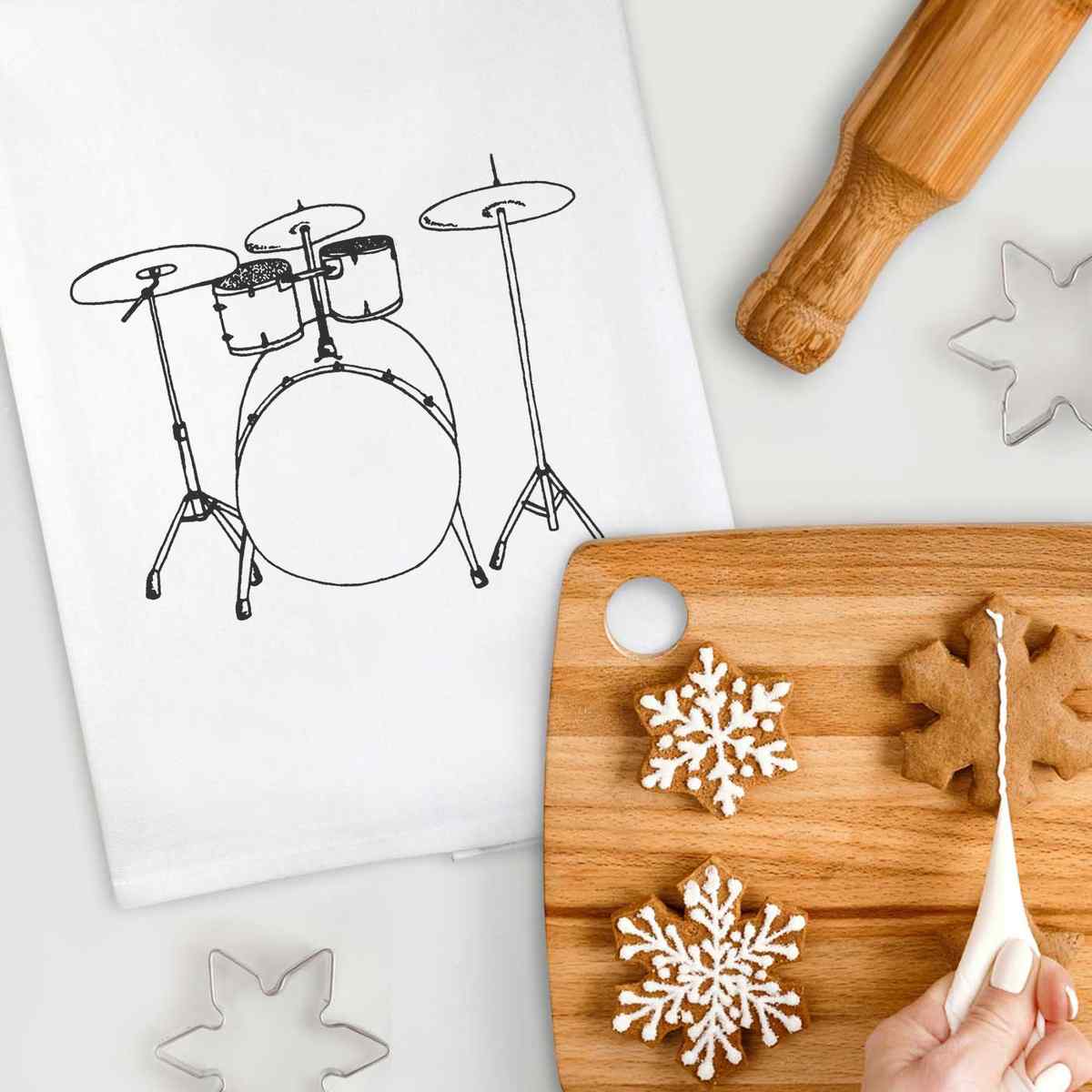 'Drum Set' Cotton Tea Towel / Dish Cloth (TW015532)