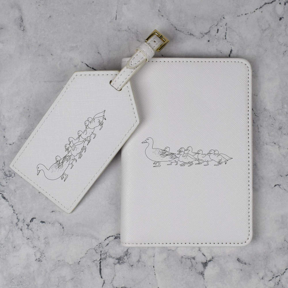 A luxury travel set for holiday makers and jet setters! This premium duo consists of a passport cover and matching luggage tag; both made from white, leather-look PU and printed with a unique design.
