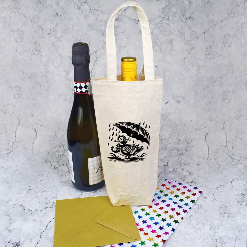 Give a gift in style with this wonderful wine bottle bag. Printed one side with a unique design, this bag oozes with class. Each one is made from thick natural canvas and its high quality finish means it can be used again and again; perfect for picnics and adventures where a bottle of the finest wine is required. This bottle bag can comfortably carry a single standard wine or champagne bottle, up to 1.5 litres, but please check the bag dimensions are suitable before purchasing.