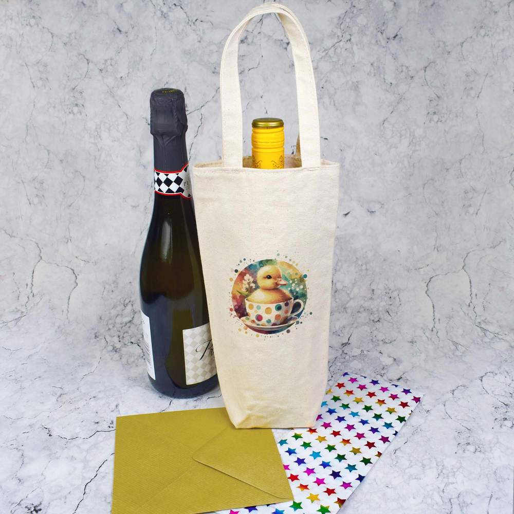 Give a gift in style with this wonderful wine bottle bag. Printed one side with a unique design, this bag oozes with class. Each one is made from thick natural canvas and its high quality finish means it can be used again and again; perfect for picnics and adventures where a bottle of the finest wine is required. This bottle bag can comfortably carry a single standard wine or champagne bottle, up to 1.5 litres, but please check the bag dimensions are suitable before purchasing.