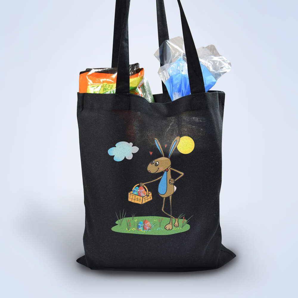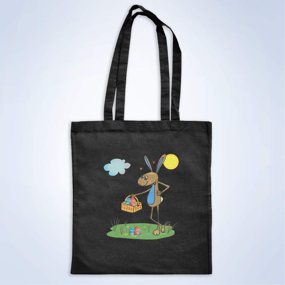 'Easter Bunny With Eggs' Classic Black Tote Shopper Bag (ZB00025321)