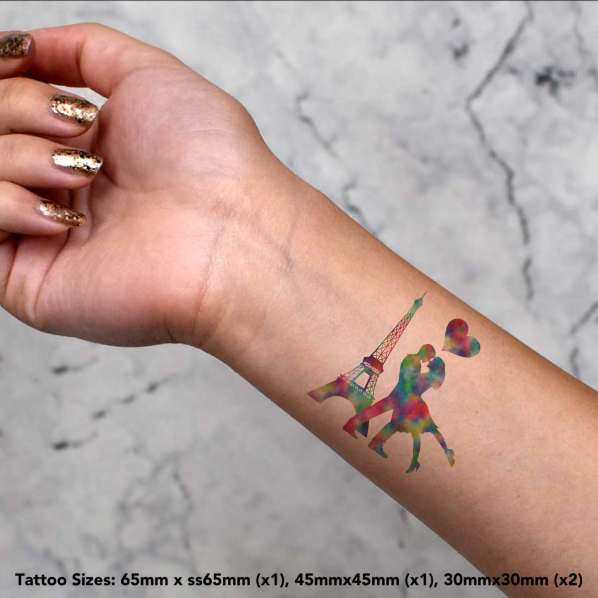 'Eiffel Tower Romance' Temporary Tattoos - Water Resistant, Skin-Safe, Non-Toxic Transfers (TO037613)
