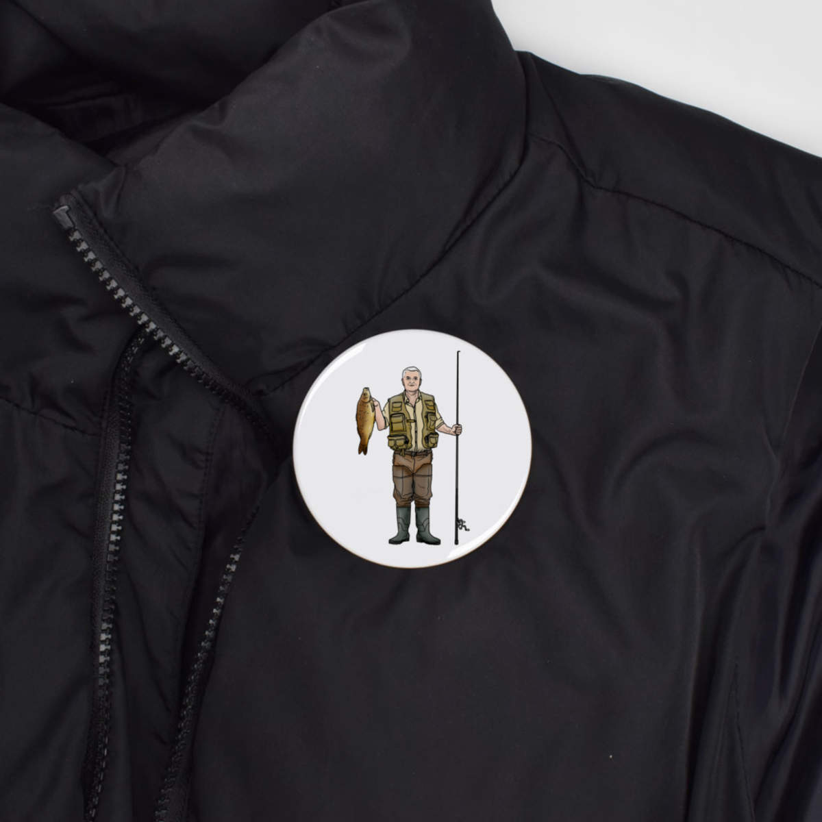 'Elderly Fisherman' Button Pin Badges (BB030468)