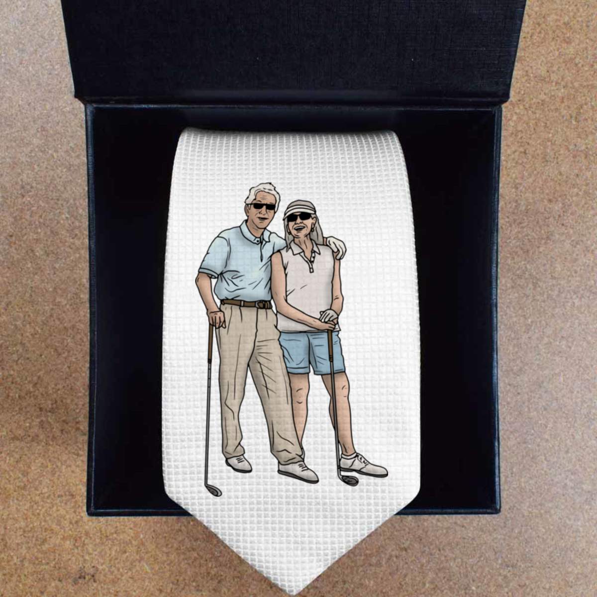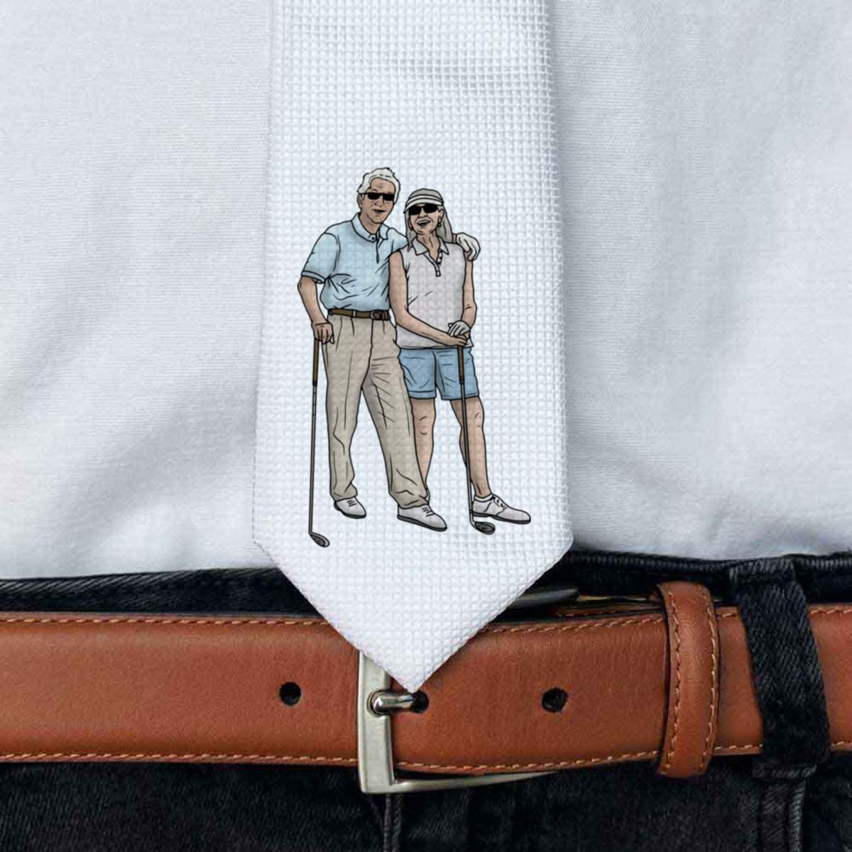 'Elderly Golf Couple' White Tie / Necktie with Gift Box (AT00011046)