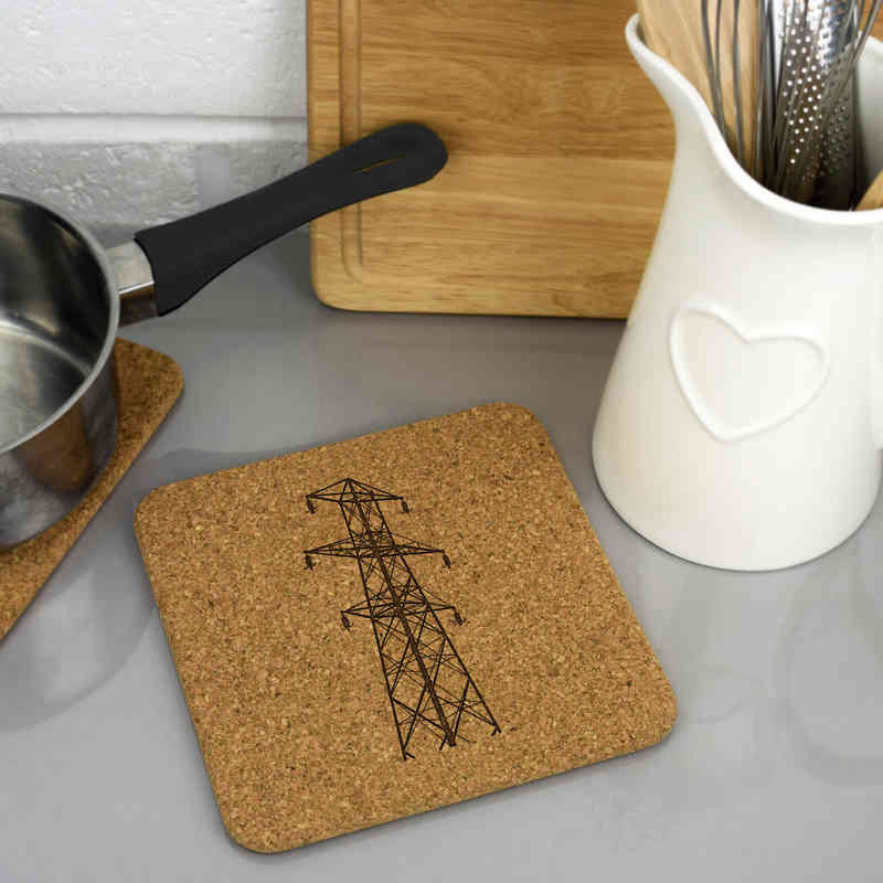 'Electric Pylon' Square Cork Trivet / Pot Stand (TR00026508)